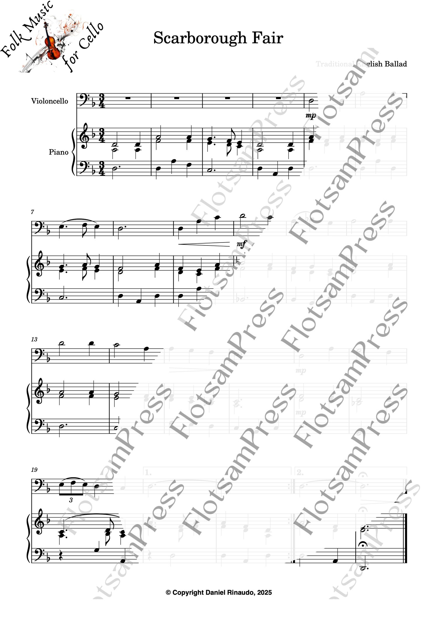This arrangement of Scarborough Fair is written for beginner to lower-intermediate cello players, with a simple and supportive piano accompaniment. Perfect for church services, lessons, or home practice.