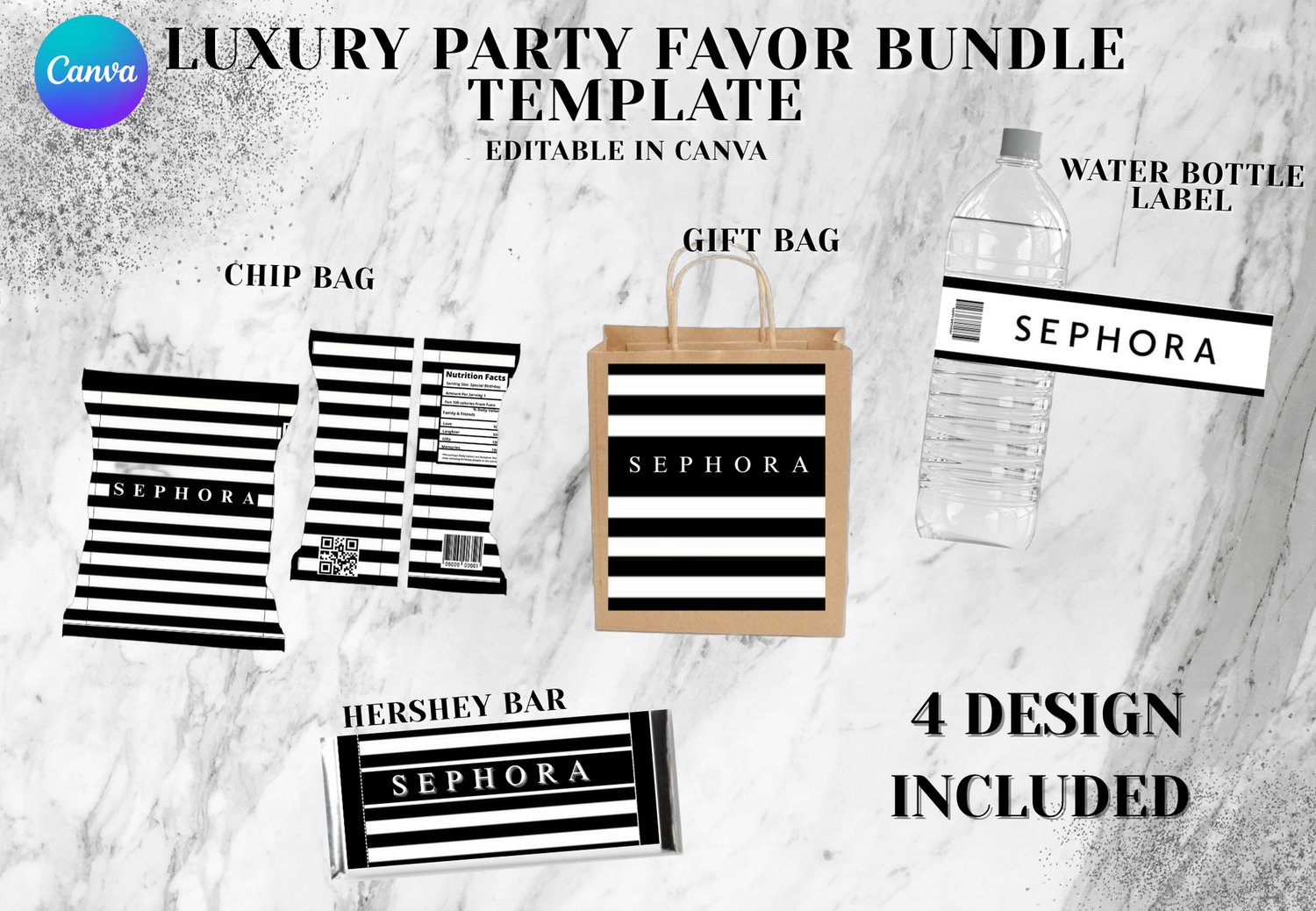 Add elegance to your celebration with this Luxury Party Favor Bundle! This digital set includes 4 different designs perfect for birthdays and more: