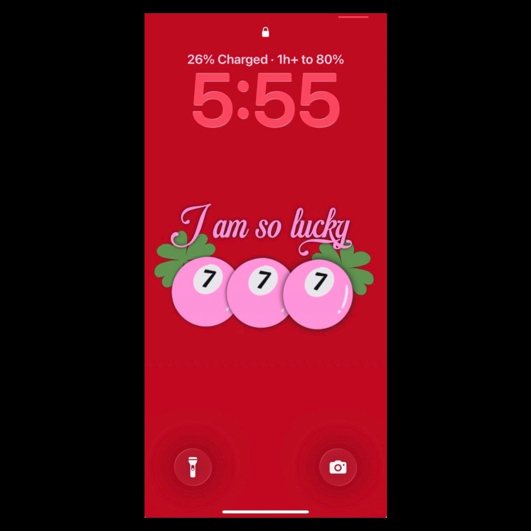 I am so lucky wallpaper design w/ red background, 777, four leaf clover. (phone wallpaper)