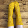 Hand-knit socks are designed to be slightly smaller than your foot to give a small amount of negative ease. This means that they will hug the foot and leg and stay in place. The sizes given are ‘to fit’ sizes.