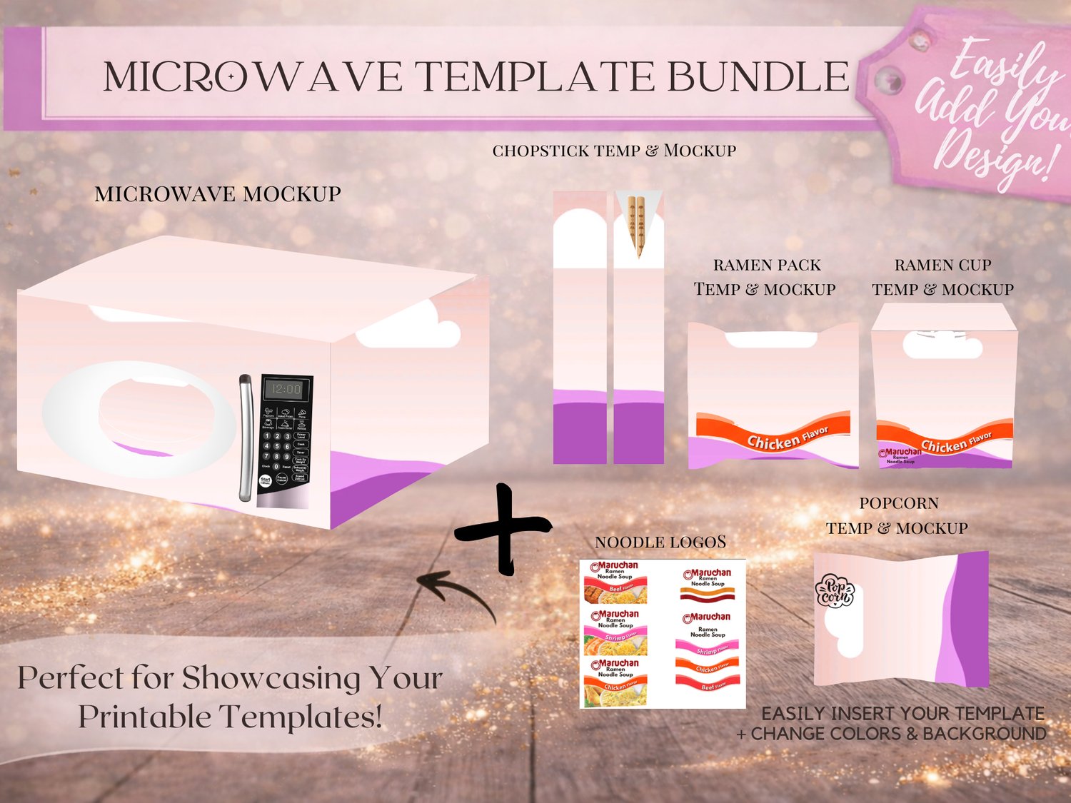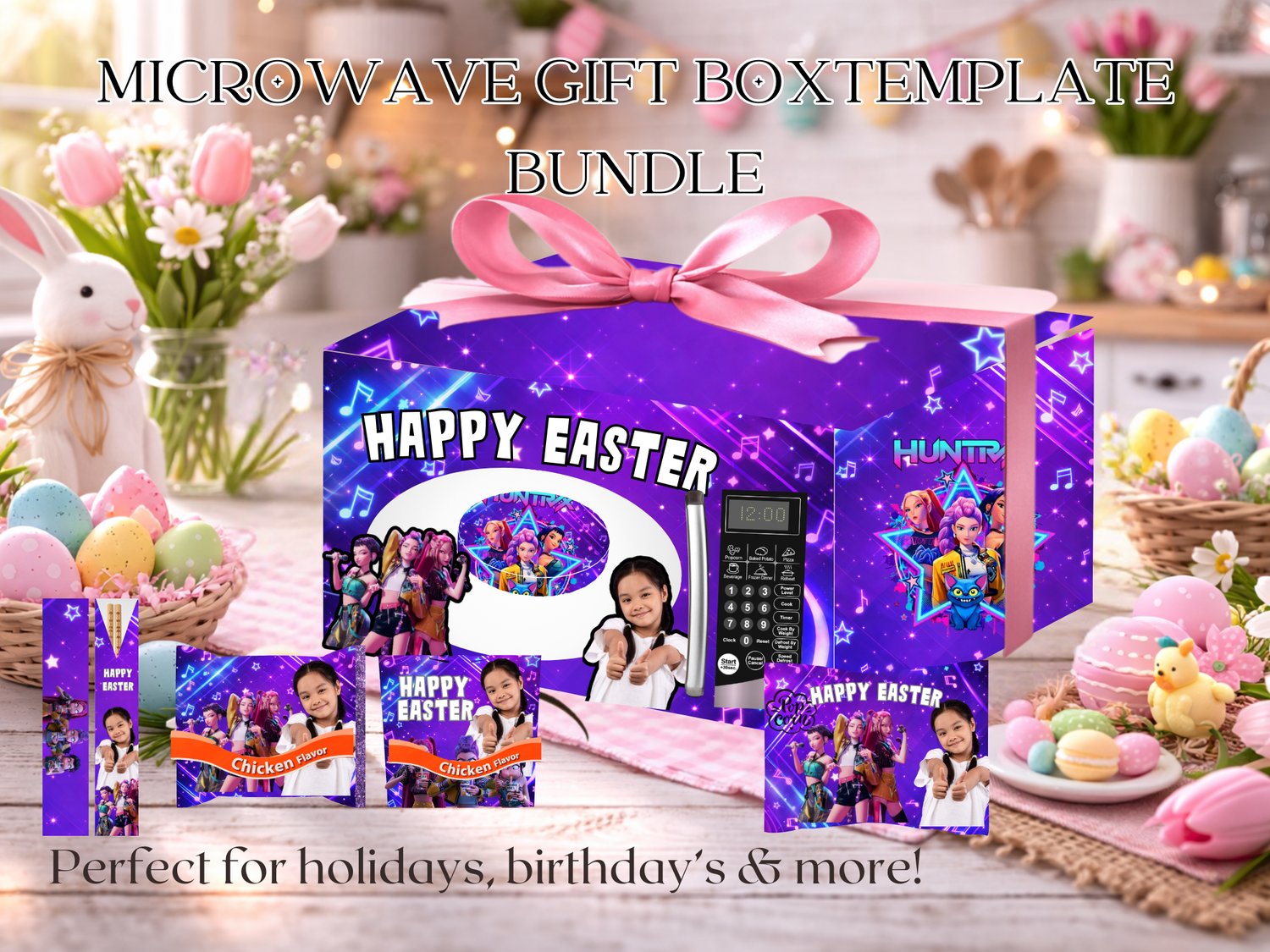 Create a fun, realistic 8.5X11 microwave gift box with this fully editable Canva template bundle.