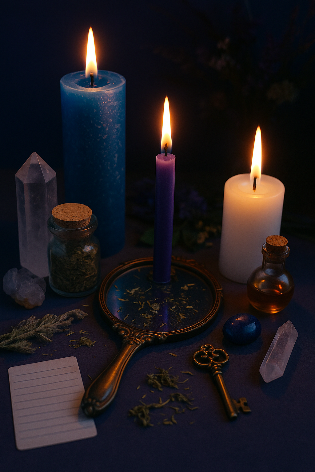 This is a single-session ritual performed on a Mercury or Moon day for clarity, reflection, and communication.