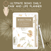 Boho Vibes everywhere- Meet your newest deluxe BOHO Ultimate Daily Task and ALL IN ONE Life Planner! With over 100+ pages of task-driven planning pages that are easy to make your own, you are going to love the neutral feel and calming desert boho vibes. All tabs are Hyperlinked!