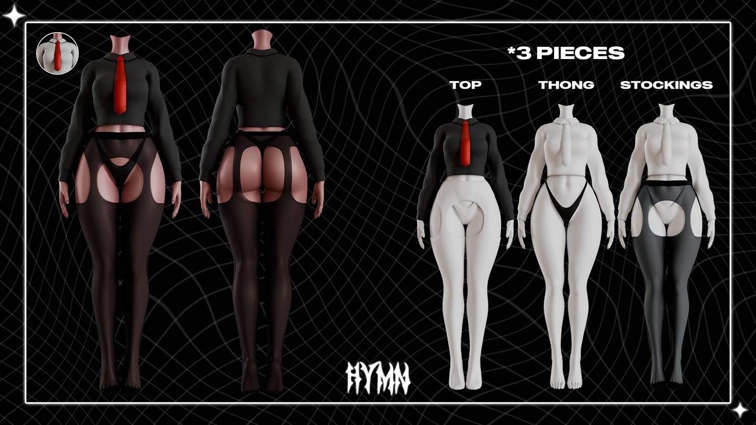 - 2 Custom Texture Variations for Top, 1 For Thong & Stockings, & Their Maps
