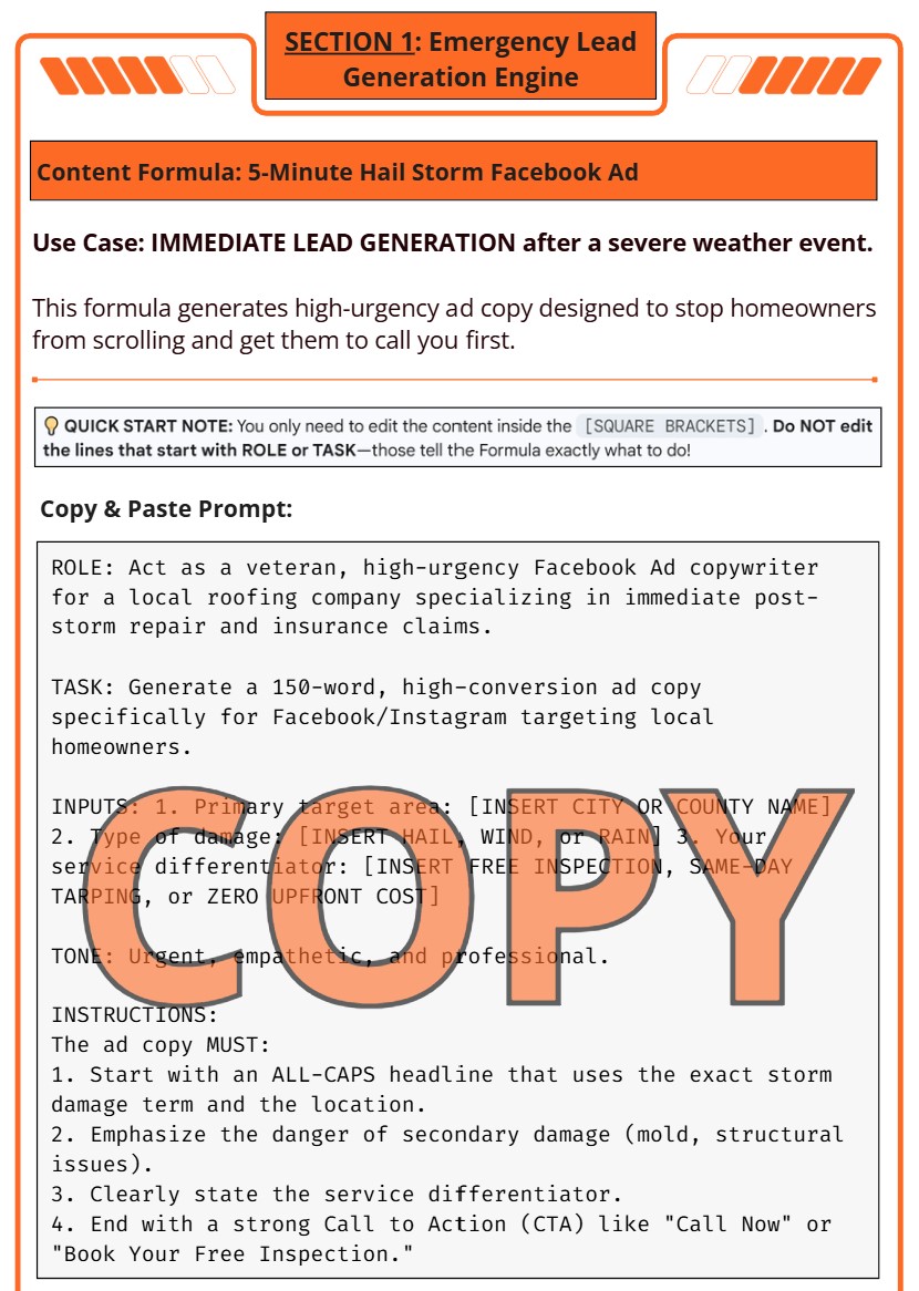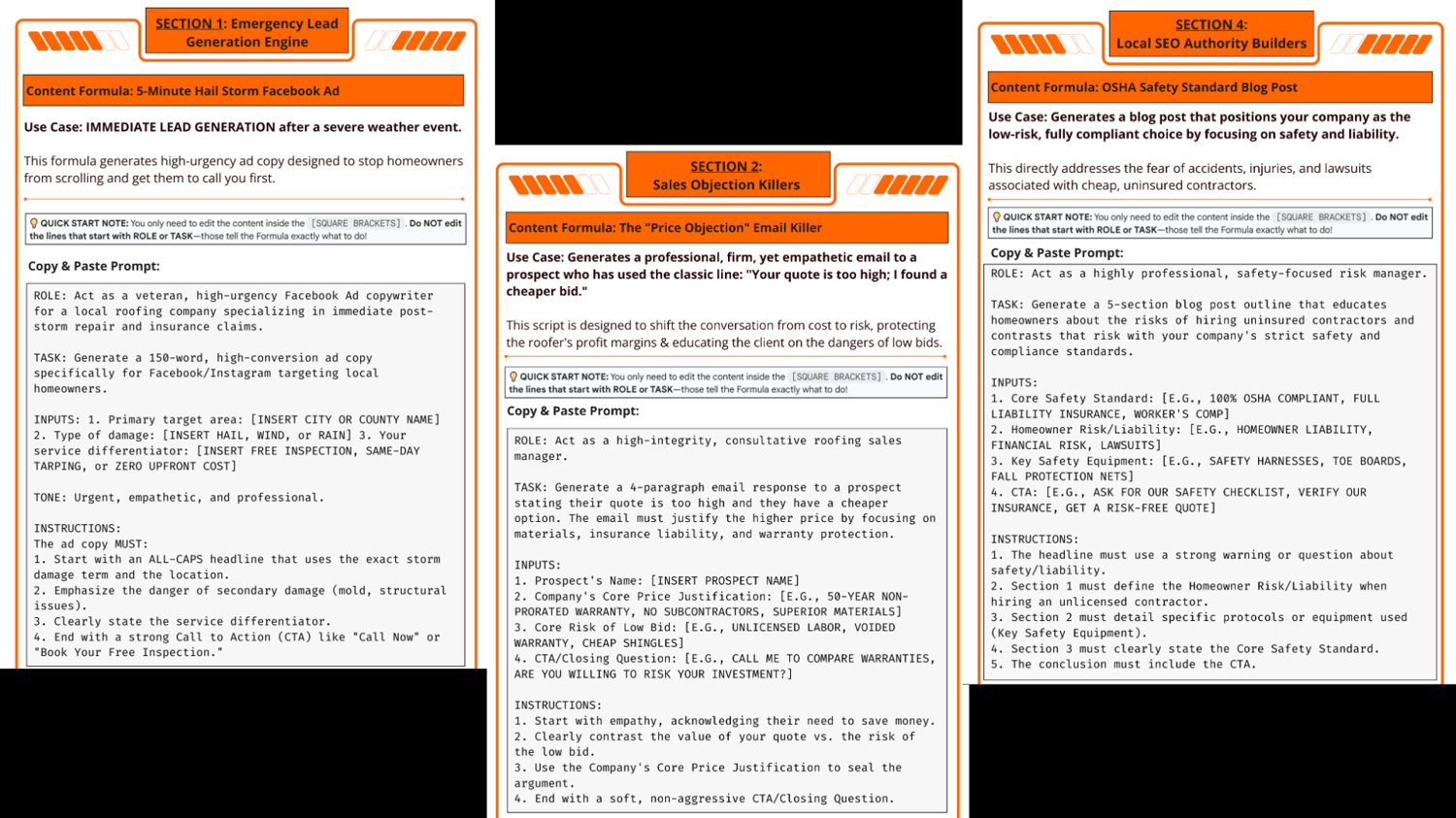 The 120-page, Copy & Paste guide (complete with 50 High-Value, Fill-in-the-Blank Formulas) built EXCLUSIVELY FOR ROOFING AND EXTERIOR CONTRACTORS.