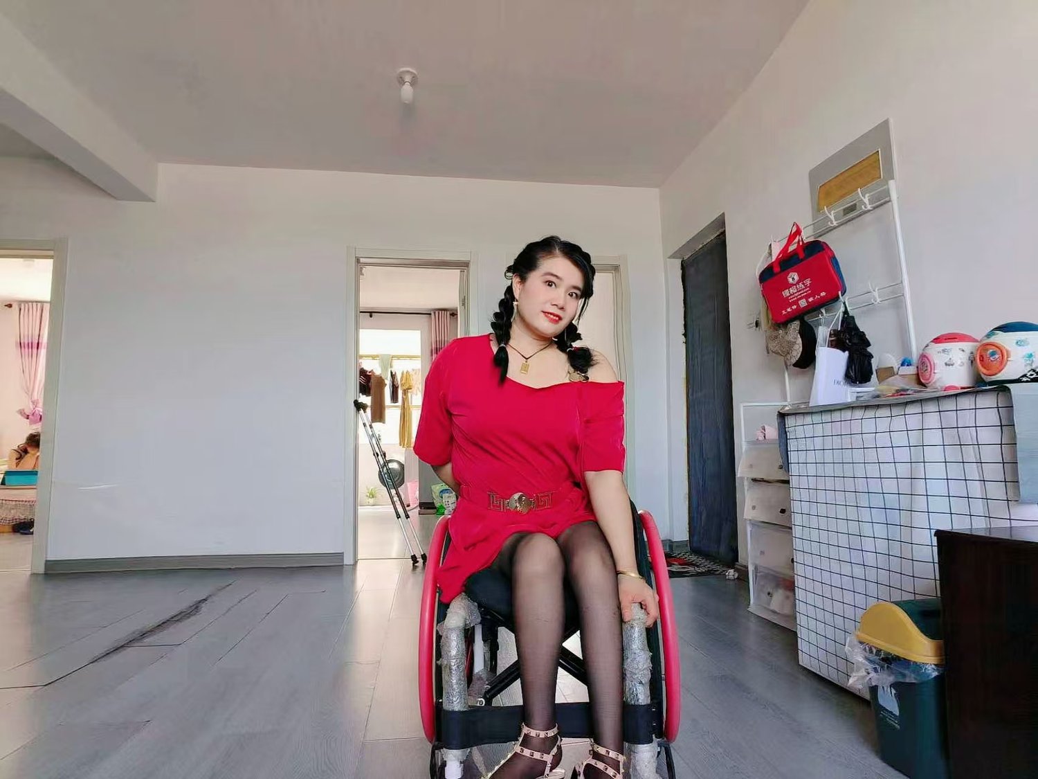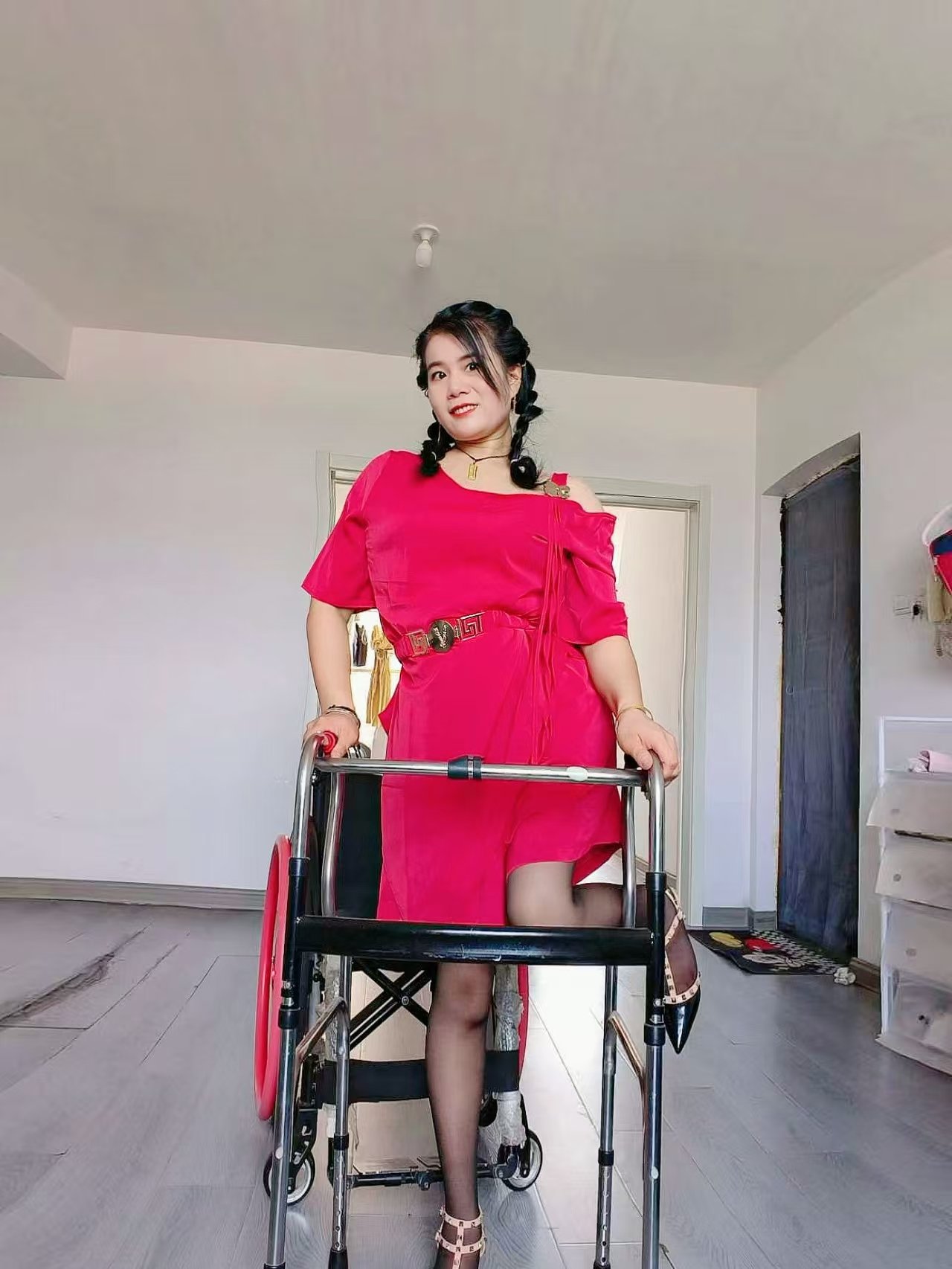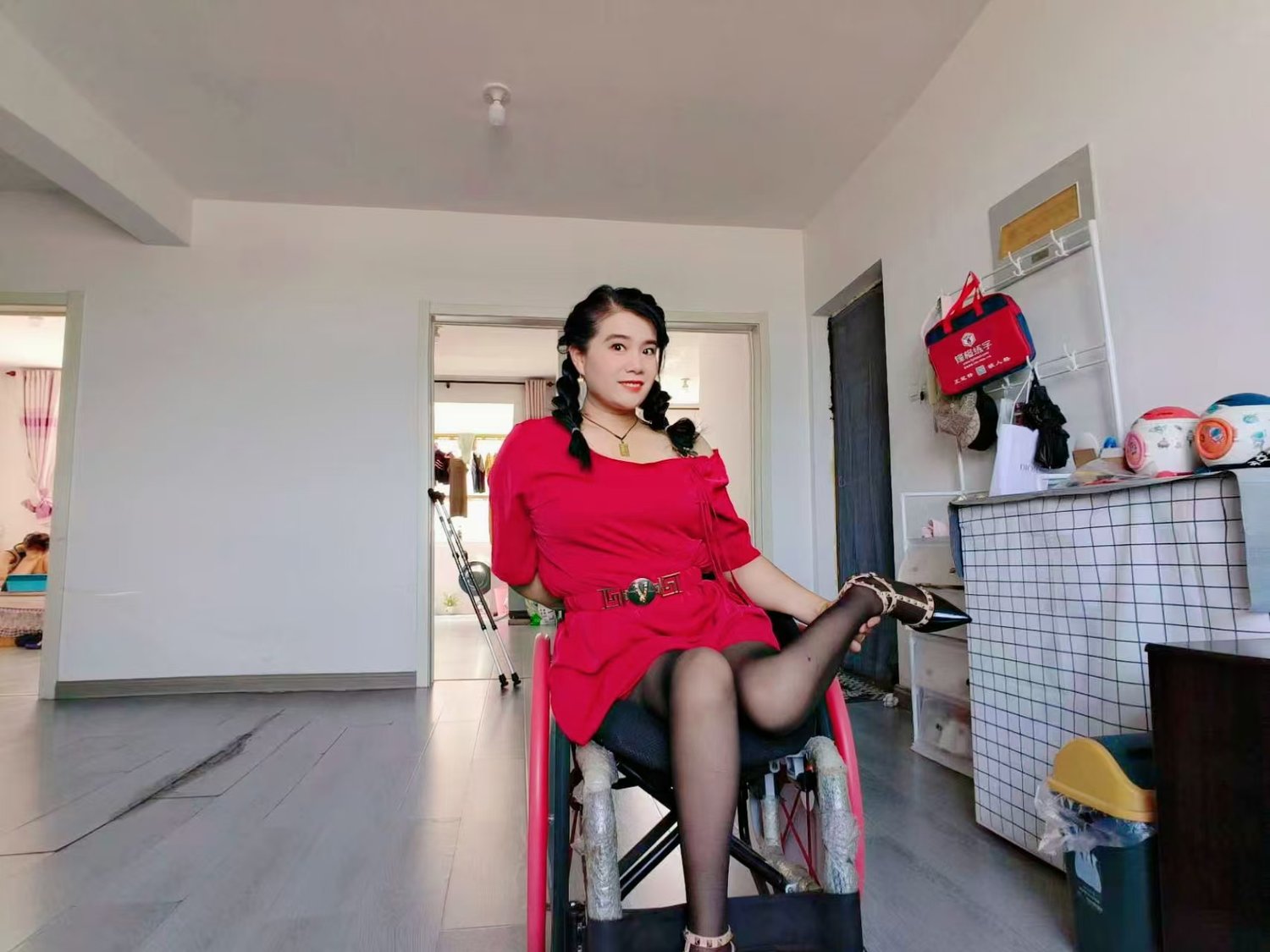 but she can only wash her feet alone at home