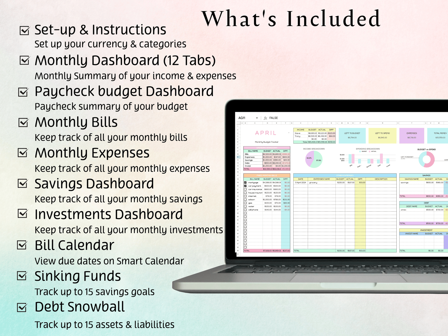 - Fully customizable: Tailor categories and sections to fit your specific financial needs