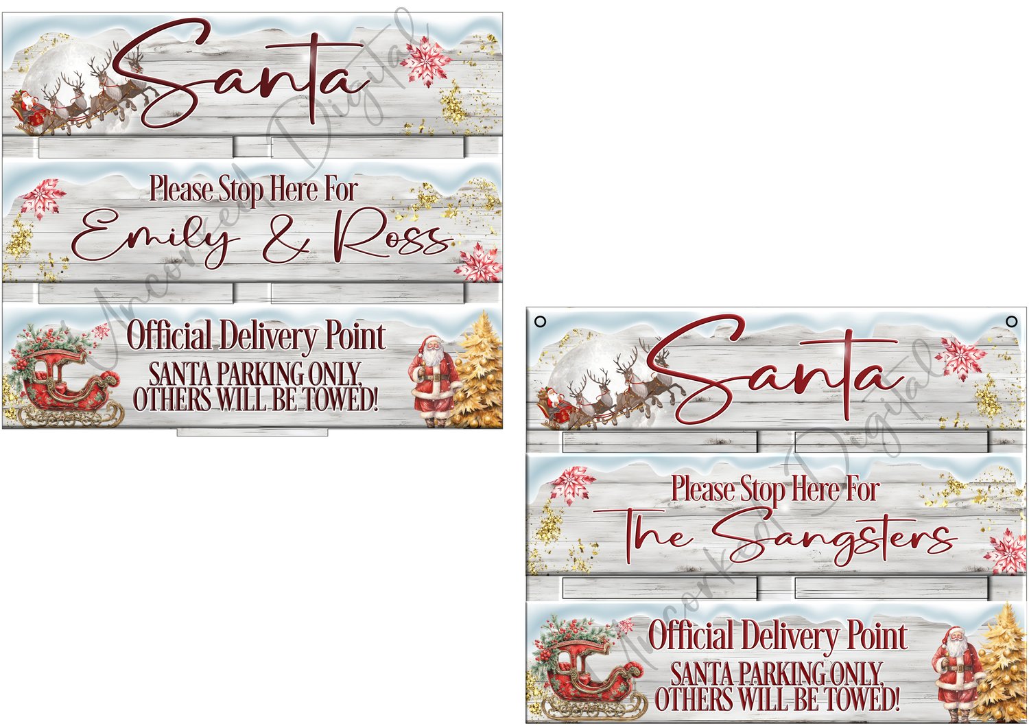 Santa stop here bar plaque x 3, hanging and freestanding (woodform_