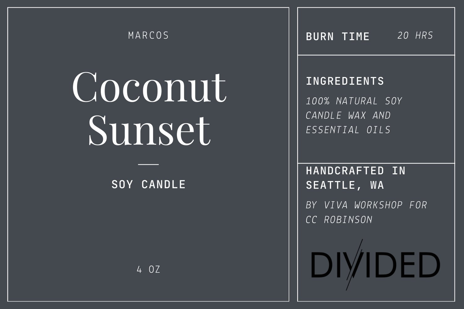 Crafted with care from Etsy store's Viva Workshop, these 4oz soy candles have a warm coconut scent just like the shampoo, soap, and conditioner from Marcos's Havana area. With a burn time of 20 hours, you'll enjoy this candle long enough to finish reading Divided! Pairs perfectly with a Divided signed paperback.