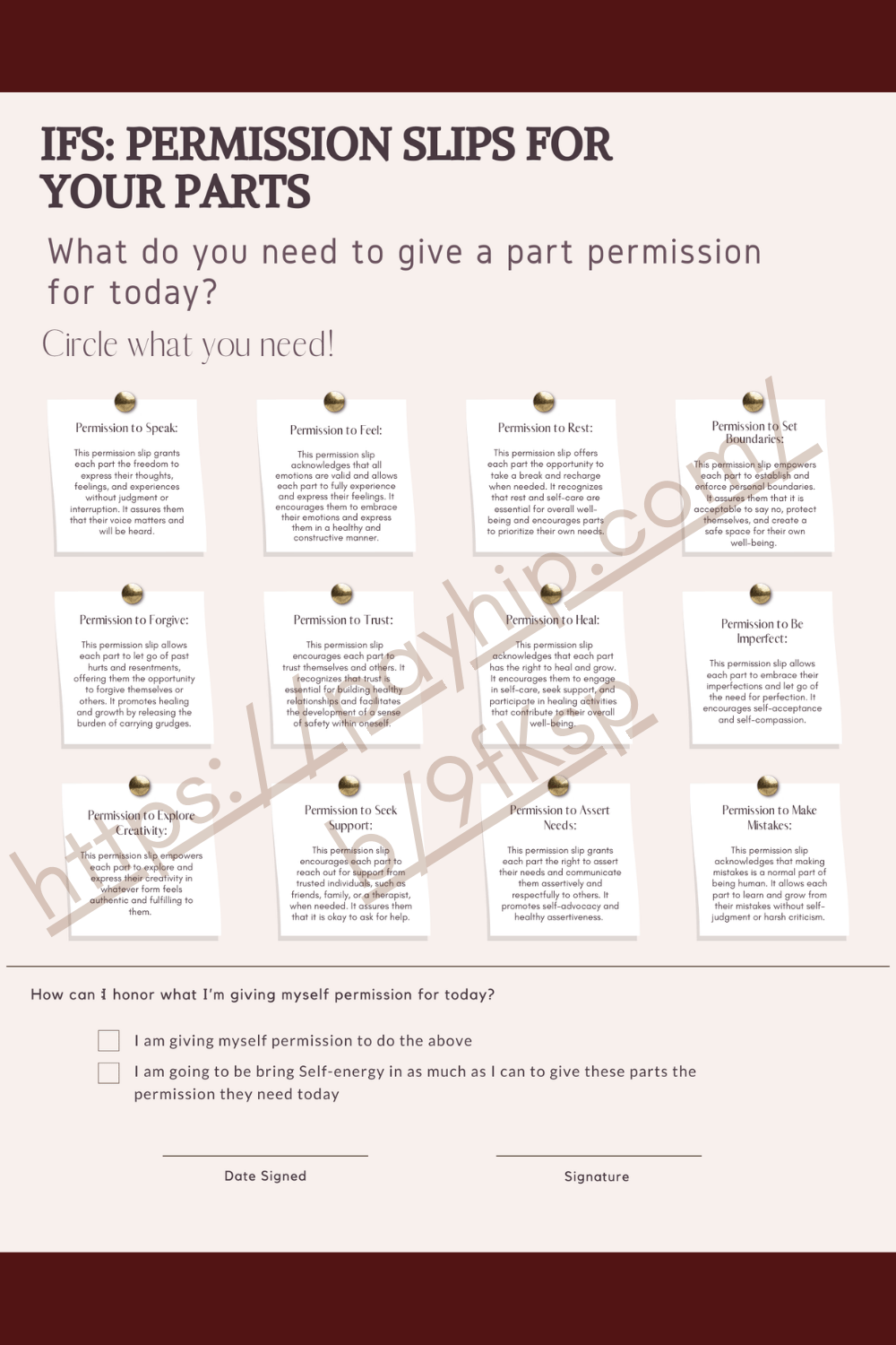 IFS Parts Work Permission Slips: Internal Family Systems Therapy Tool