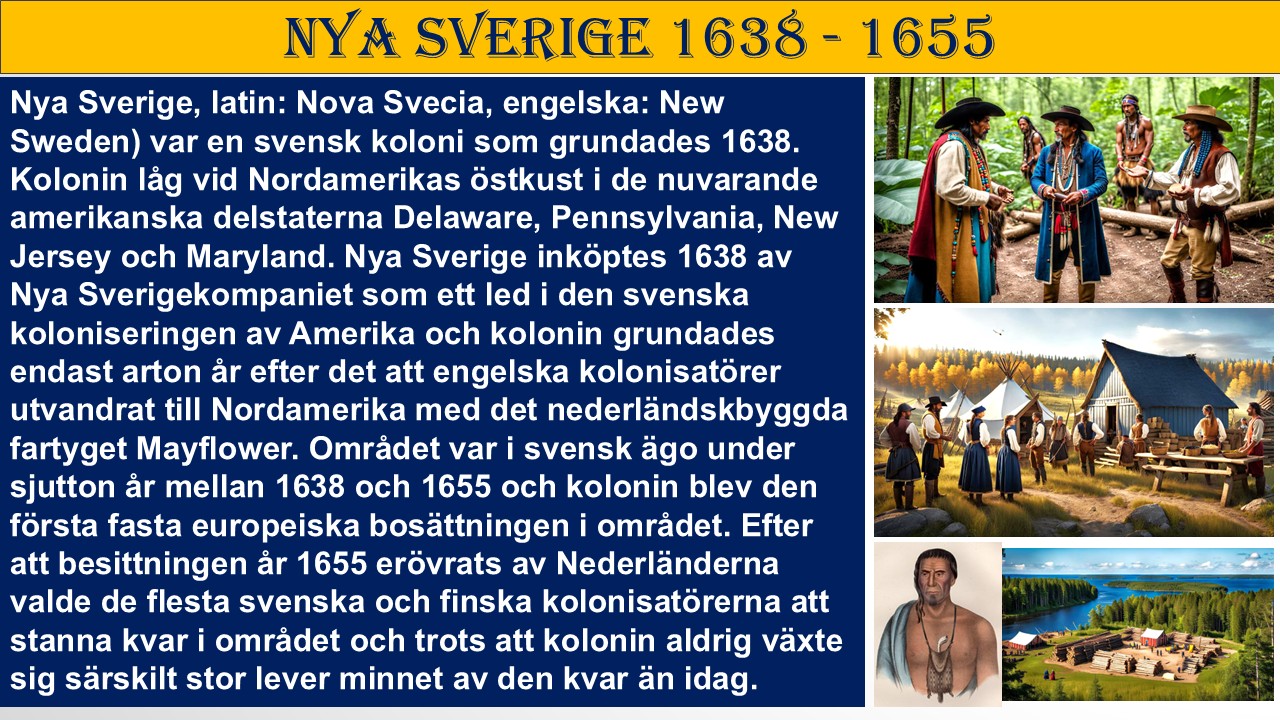 Nya Sverige 1638 till 1655 AI tjänst uppdaterad 2025 juni. (Swedish)
