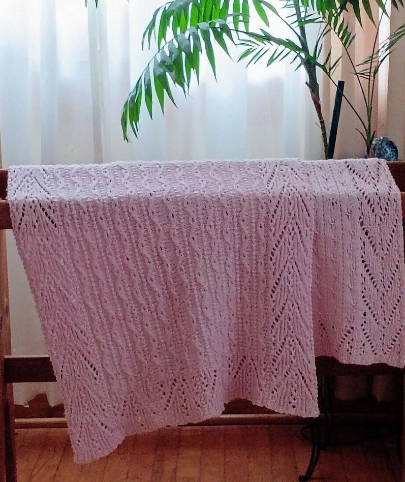 Gauge 25 sts and 24 rows = 4” in Chart pattern, blocked.