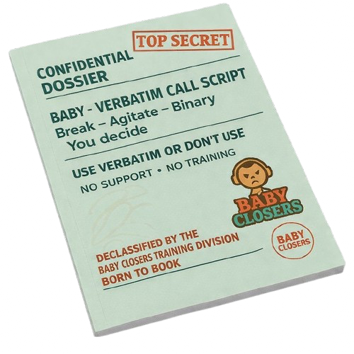 BABY is a verbatim call script designed to force early placement — fast clarity or a clean exit — before fake interest, follow-ups, and ghosting begin.