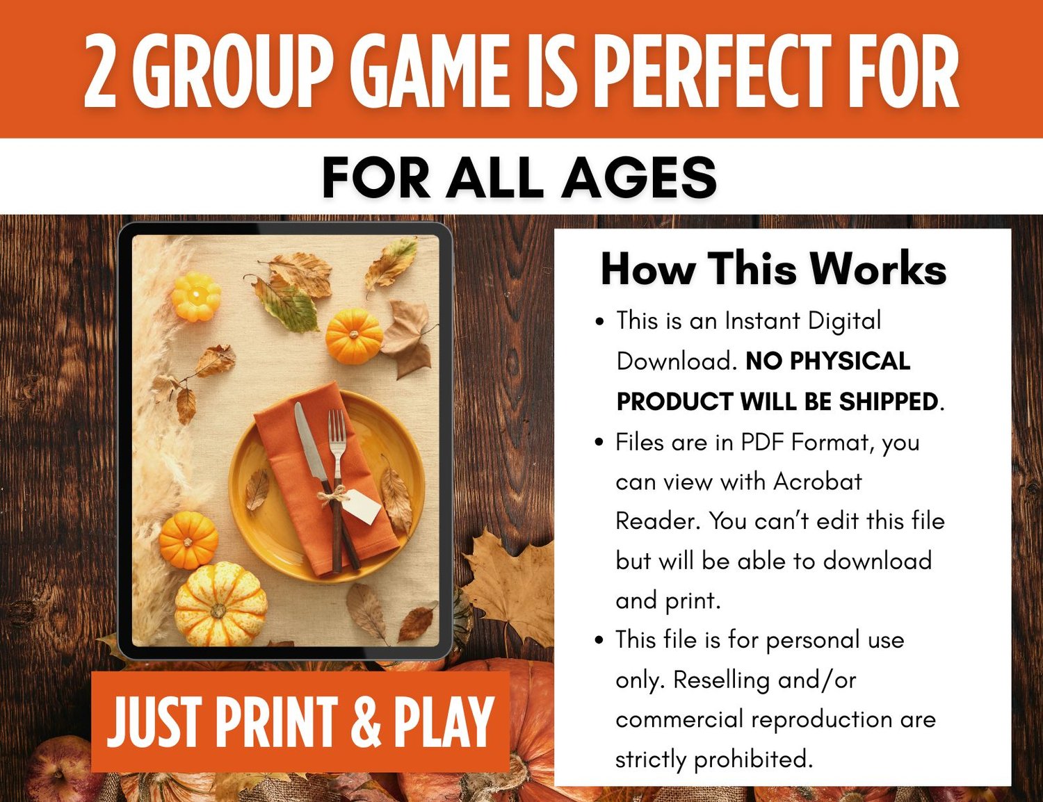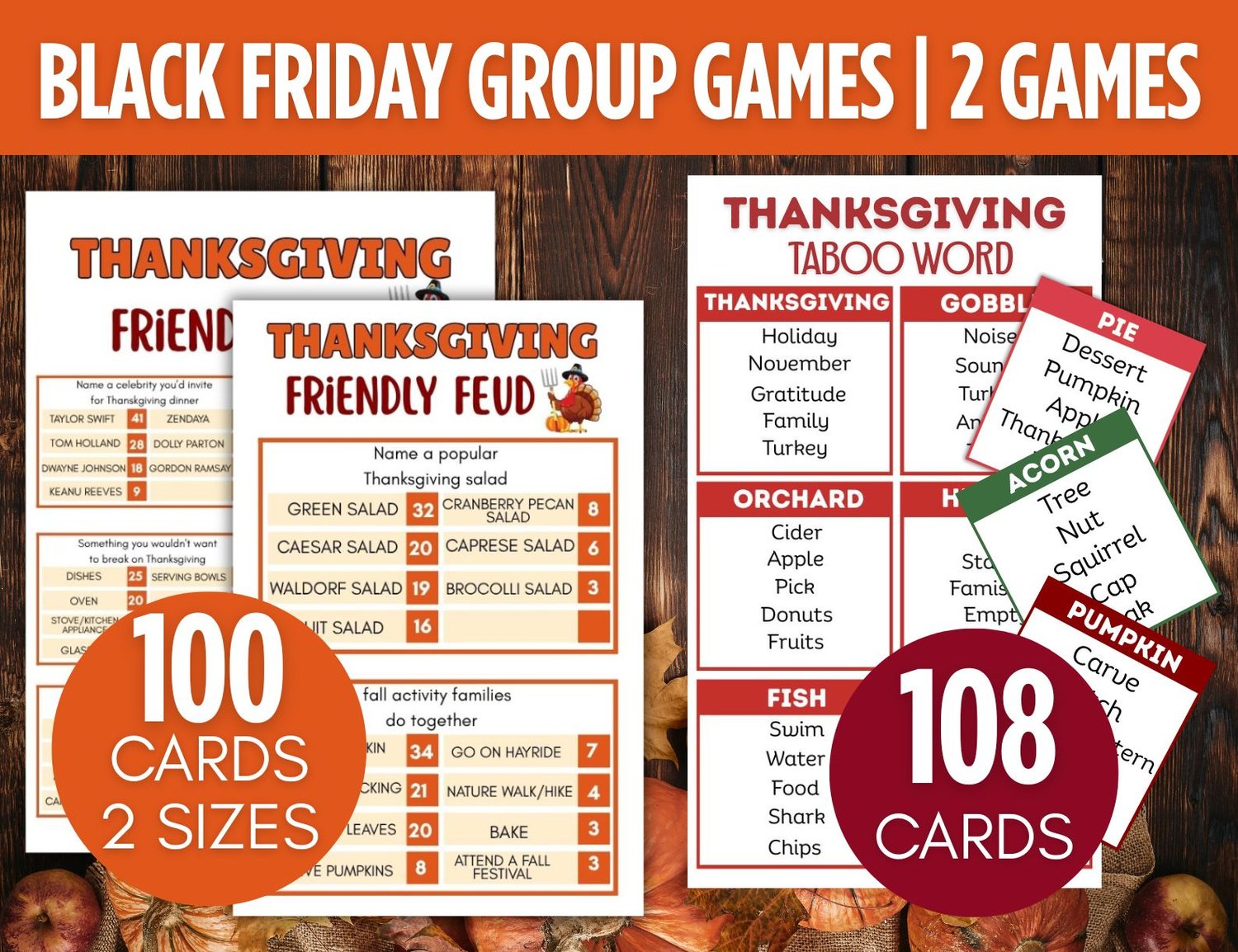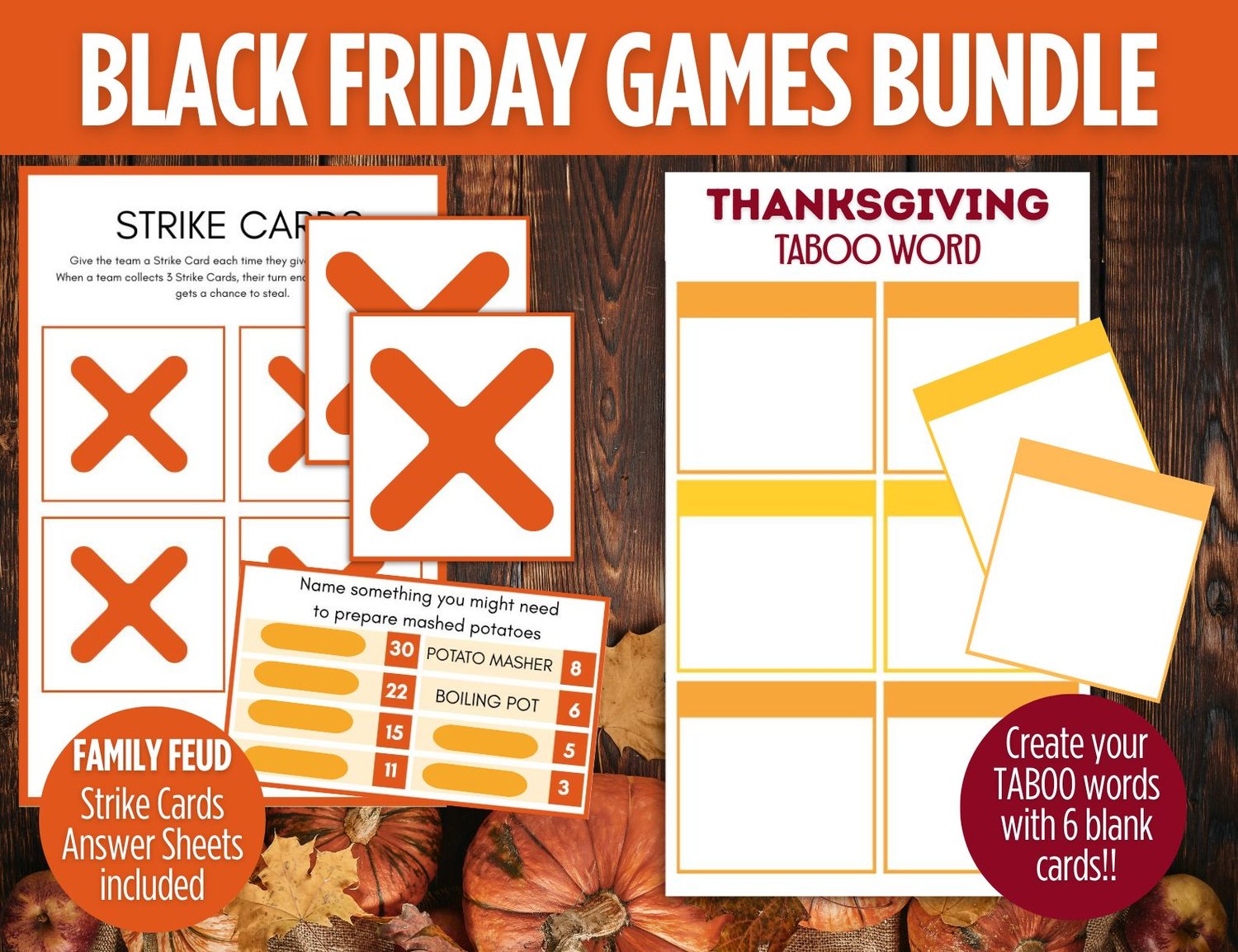 If you want some more festive and exciting group Thanksgiving-themed games, you’ll love my Black Friday Group Games Bundle, featuring two crowd-favorite Thanksgiving printables: