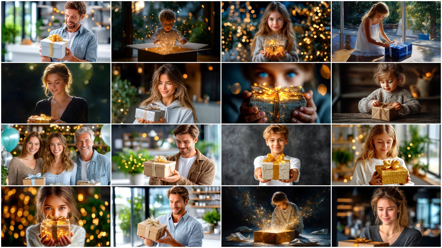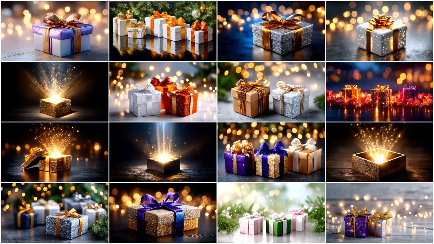 The pack features wrapped boxes, ribbons, shiny decor, and cheerful moments filled with light and anticipation.