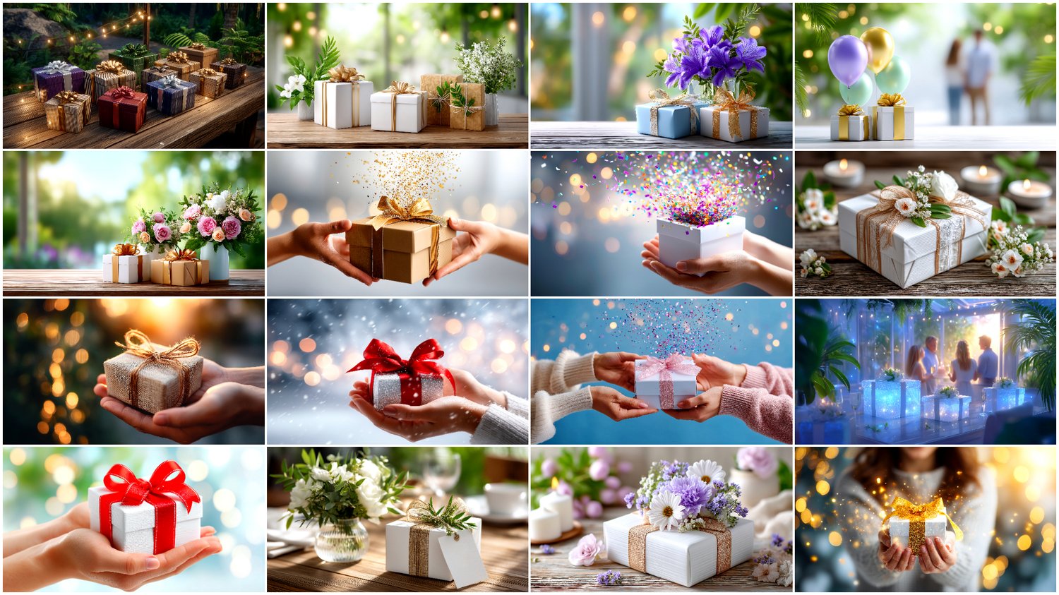 - AI Photo Pack 4/6 — Birthday Series: “Birthday Gifts & Joy — Celebration Details”
