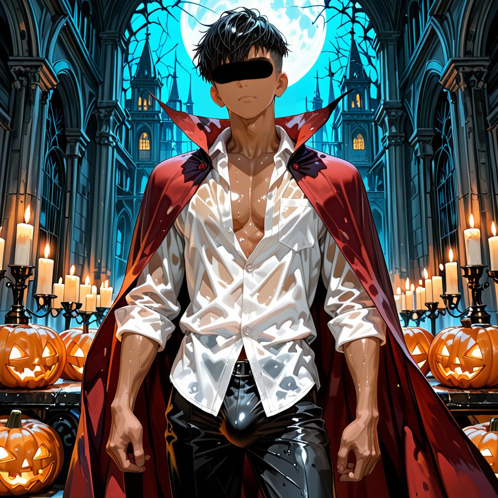 サウナで「ハロウィン」をテーマに、ヴァンパイアの男らしいキャラクターの魅力を思い切って表現しました。