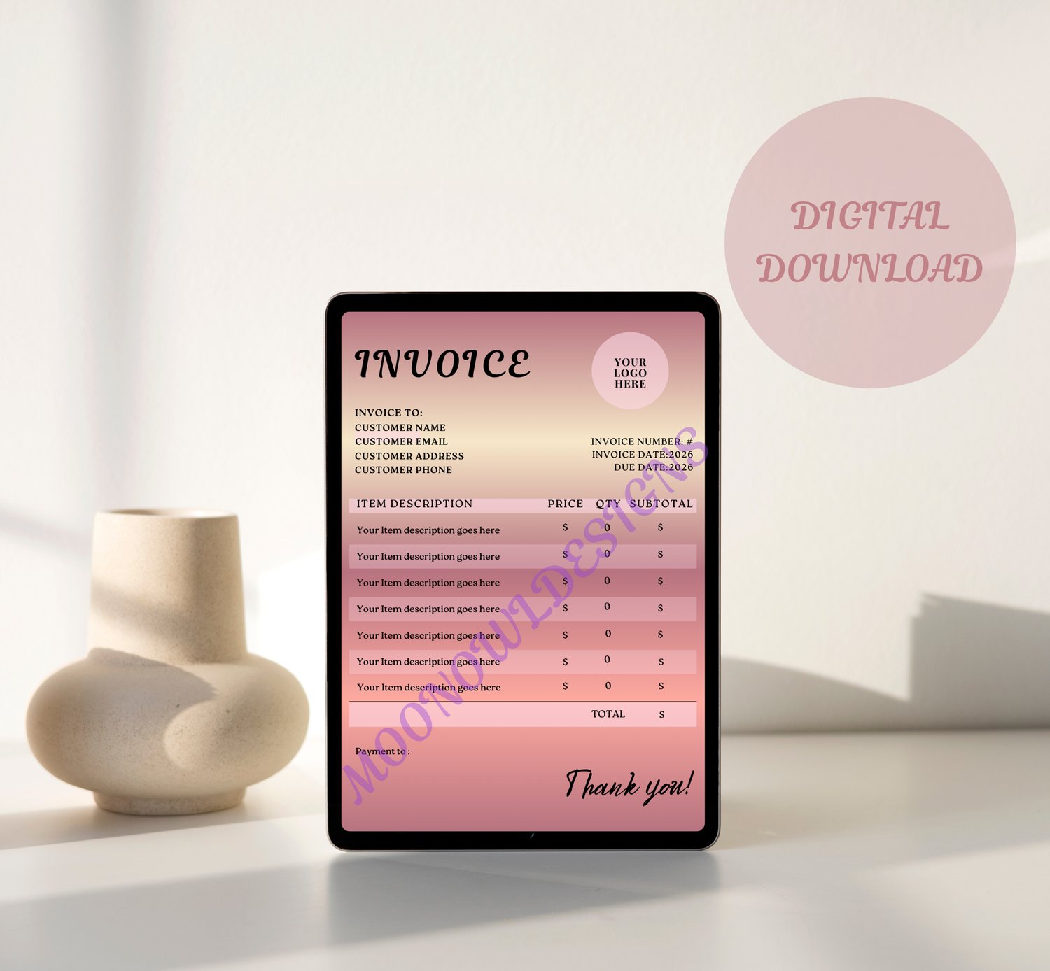Simple invoice that is editable on Canva. Just fill in your information. PDF with link will take you to the tracker.
