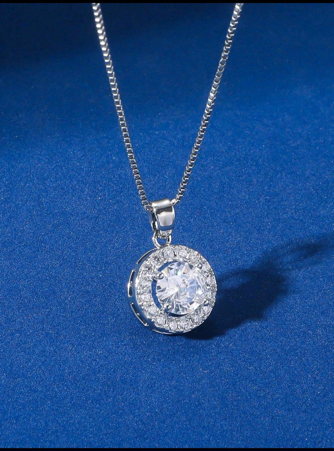 1 Pc Fashion Style Silver Round Artificial Pendant Necklace Women's Banquet