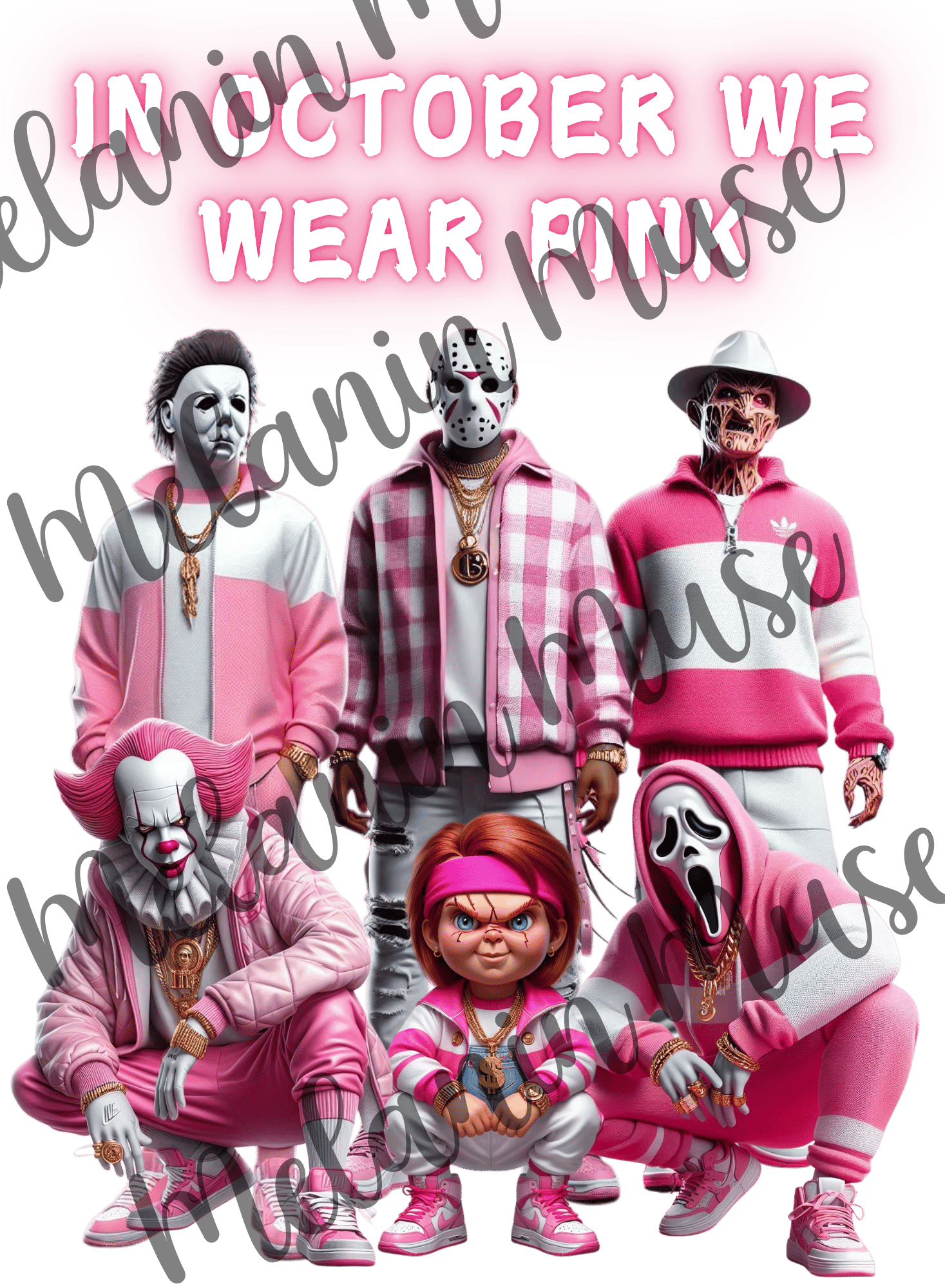 This design includes Michael Myers, Jason Voorhees, Chucky, Pennywise, Freddy, and Ghostface in black and gold!