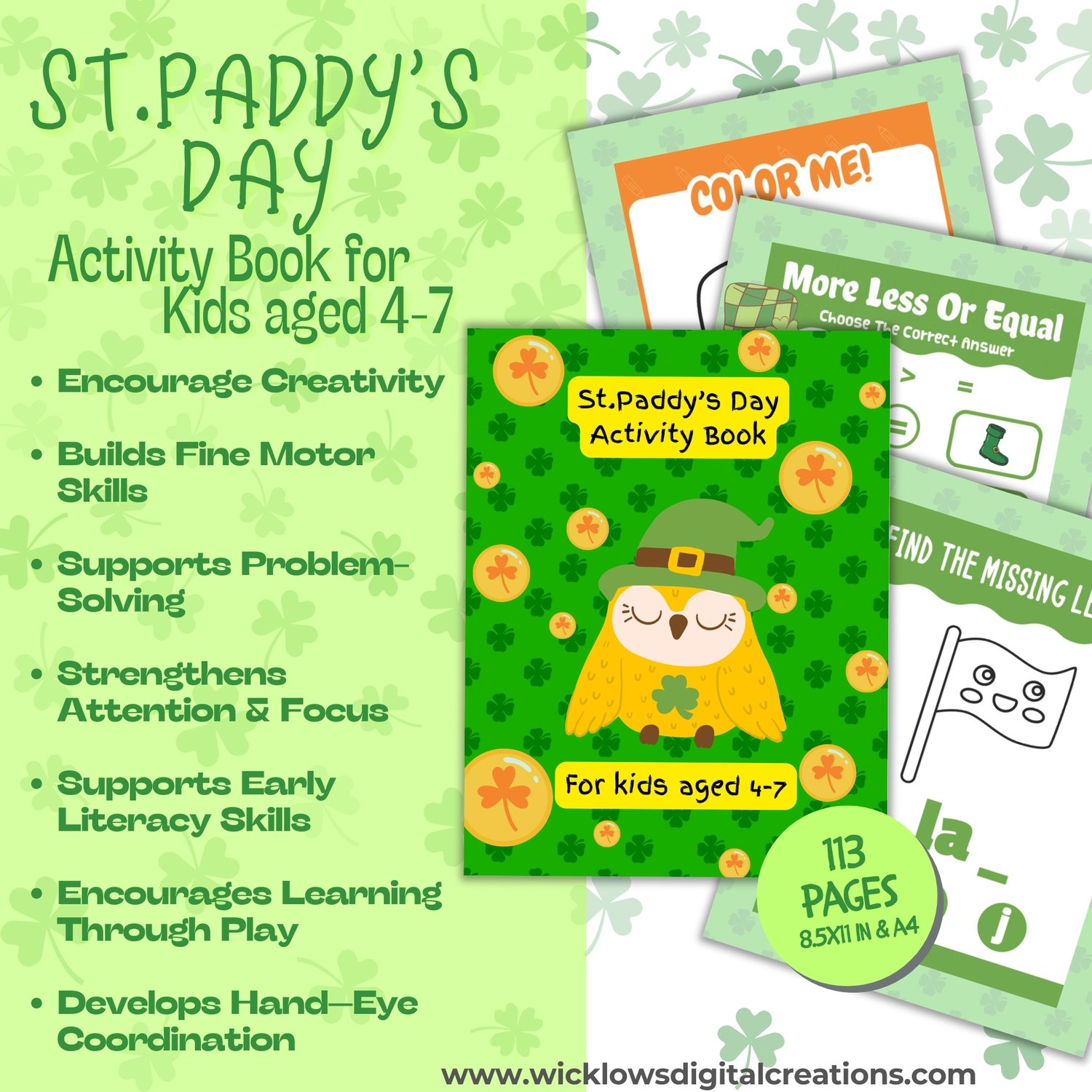 🍀 St. Paddy’s Day Activity Book for Kids (Ages 4–7)