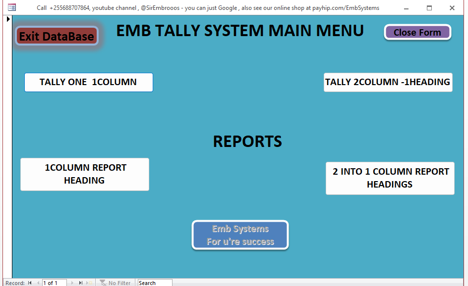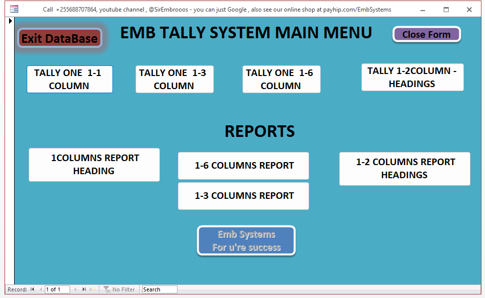 Mfumo utakusaidia kuaanda report zako za kila mwezi kwa urahisi hta kama ni za mwaka kwa kukuwezesha kutally data zako kwa haraka angalia youtuble kwa channel yetu kwa jina la @Embrooos