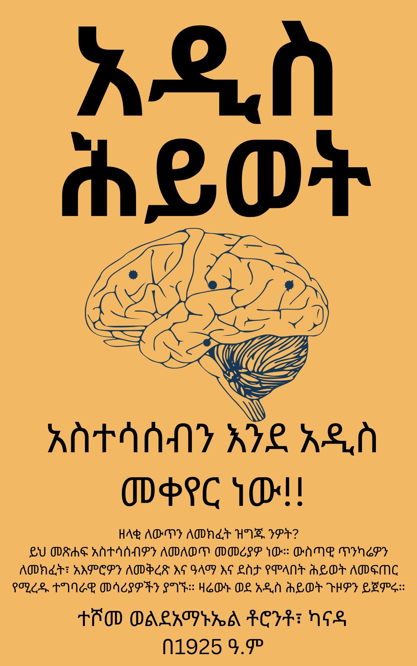 ከአምስት ክፍሎች የተዋበ ይህ መፅሀፍ አዲስ ሕይወት ሐሳብህንና ስሜትህን የሚፈጥሩ የተደበቁ ኃይሎችን ያሳስባል። ከአሮጌ አስታዎችና የማህበራዊ ተፅእኖ አስተሳሰብህን እንዴት እንደሚቀይሩ እስከማስተዋልና ንቃተ ህሊና እንዴት እንደሚሰሩ ድረስ፣ ይህ መፅሀፍ የራስህን ታሪክ እንደገና እንድትጻፍ የሚረዱህን መሳሪያዎች ይሰጥሃል። አዎንታዊነትን እንዴት እንደምትጠቀም፣ ከጎጂ እንደገና የሚያደጉ ነገሮች እንዴት እንደምትራቅ፣ እና ከተሟላና ዓላማ የተሞላ ሕይወት እንዴት እንደምትኖር ያስተምርሃል።