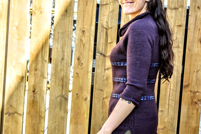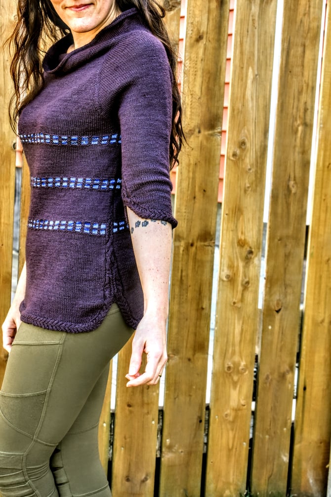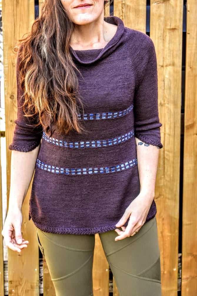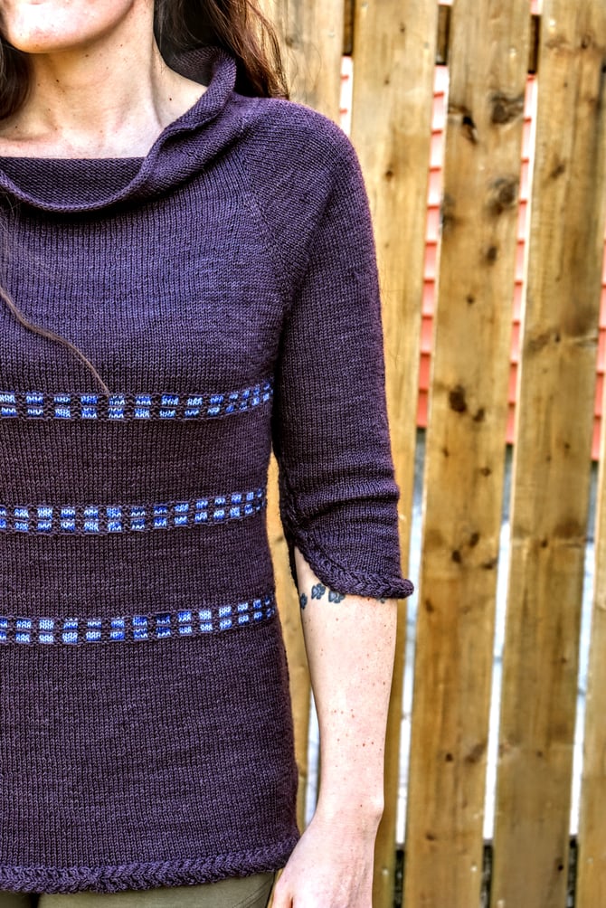 I was reading a news article which led me look up some history of Nain (Labrador), which in turn led me to a photo of anorthosite rock from the Nain area. The labradorescence in that rock was so beautiful! That image led to this sweater and colours. And a happenstance of serendipity: unbeknownst to me at the time, the woman behind Wild Atlantic Yarns used to be a geologist!