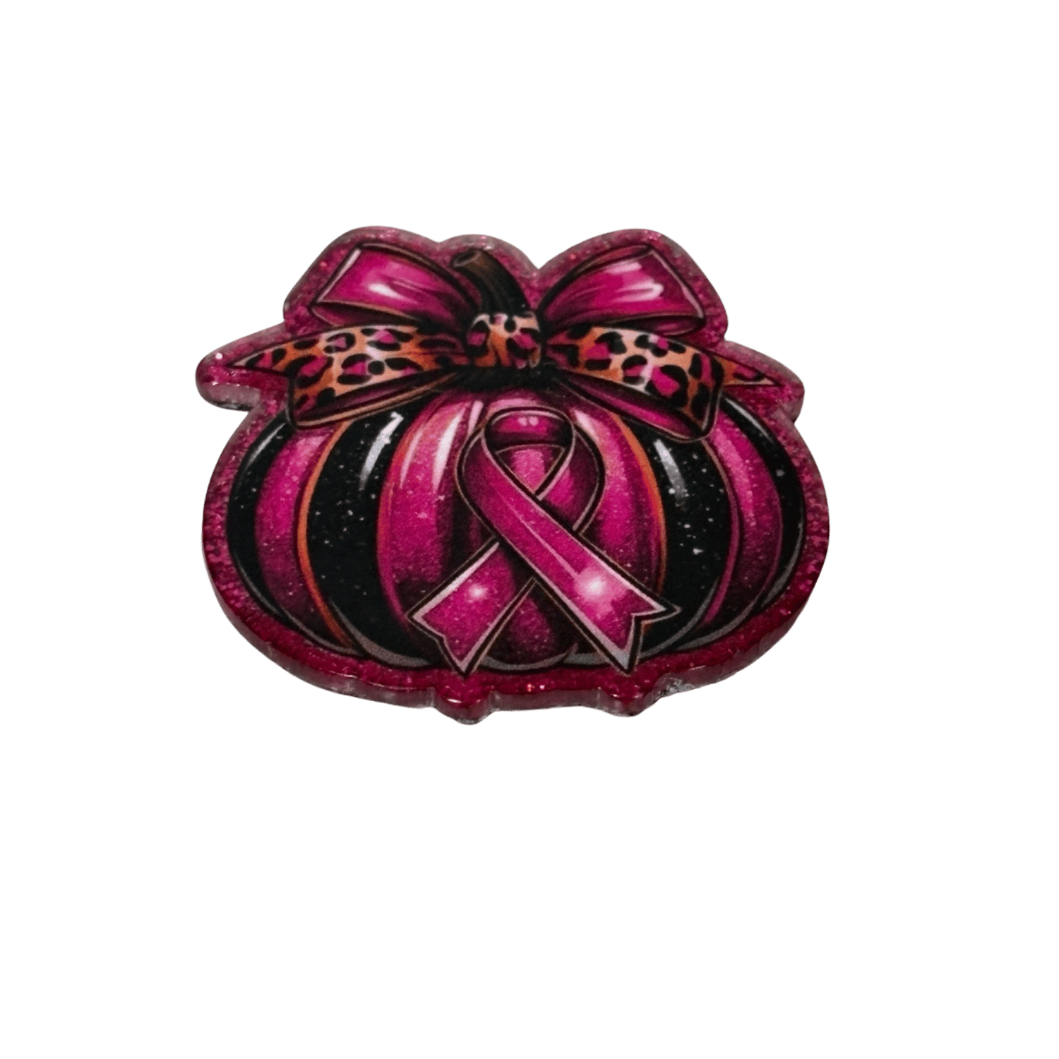 Celebrate courage and faith with this pink pumpkin magnet wrapped in a leopard-print bow and awareness ribbon. A beautiful way to honor survivors and support hope.