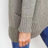 Big Sister is knit seamlessly from the top down (no short rows). After knitting the collar and back shoulders, a few stitches are picked up for the fronts and sleeve caps, which are incorporated into the upper body. The bottom band with the pockets is worked across and joined at the same time. Easy techniques combined to a refined result. It will only take a few stitches to attach the pockets.