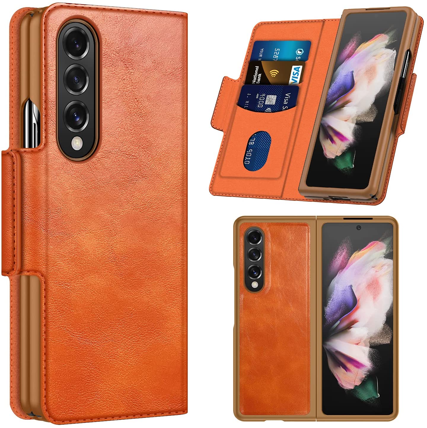 Genuine Leather For Samsung Galaxy Z Fold 3 5g Wallet Case Spliting Flip Magnetic Layer