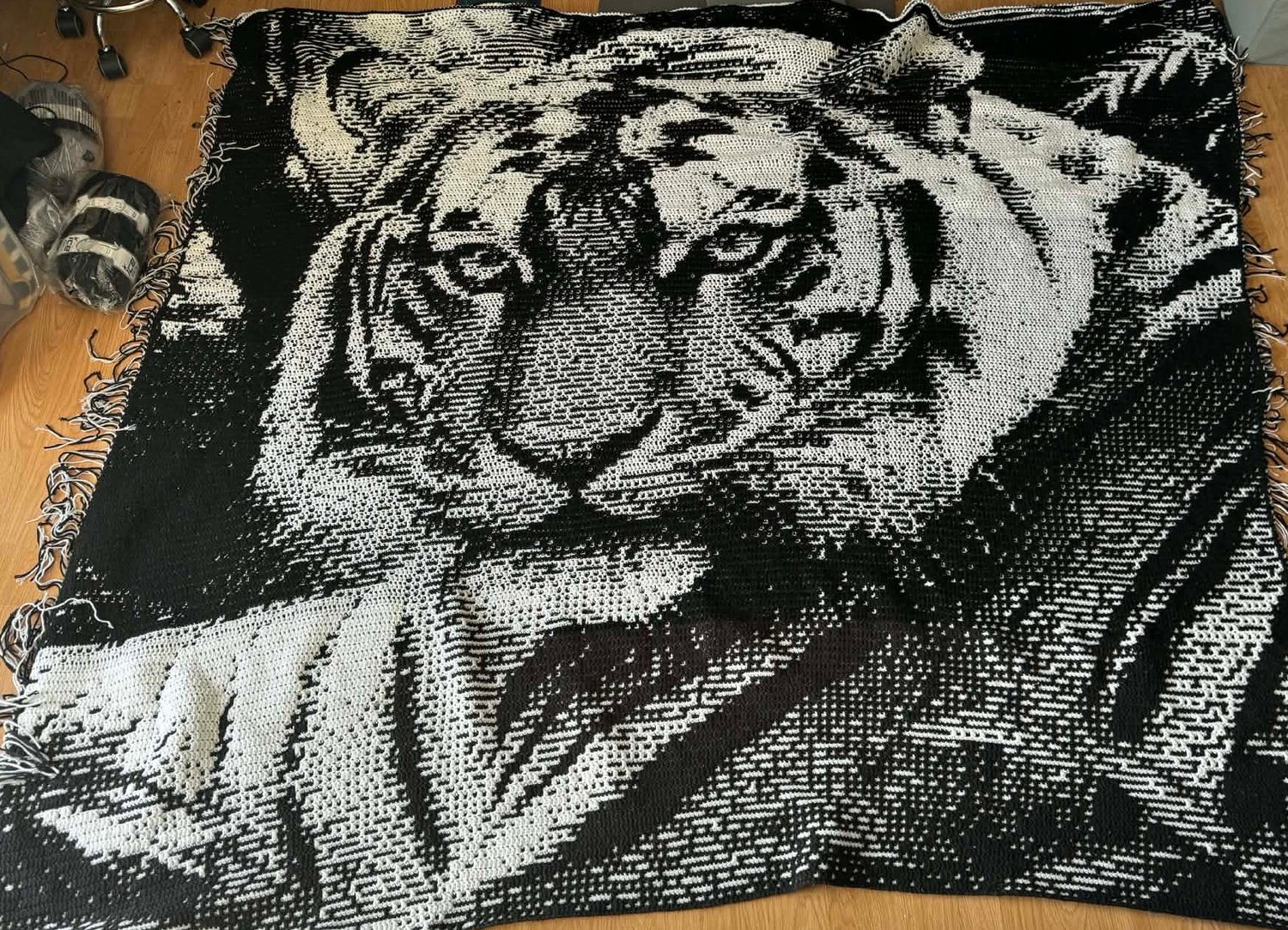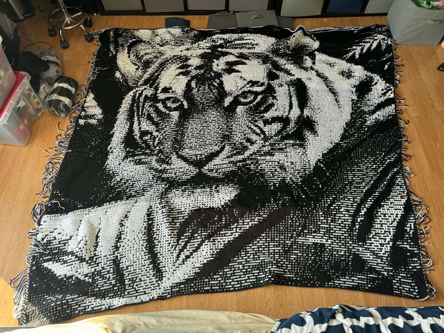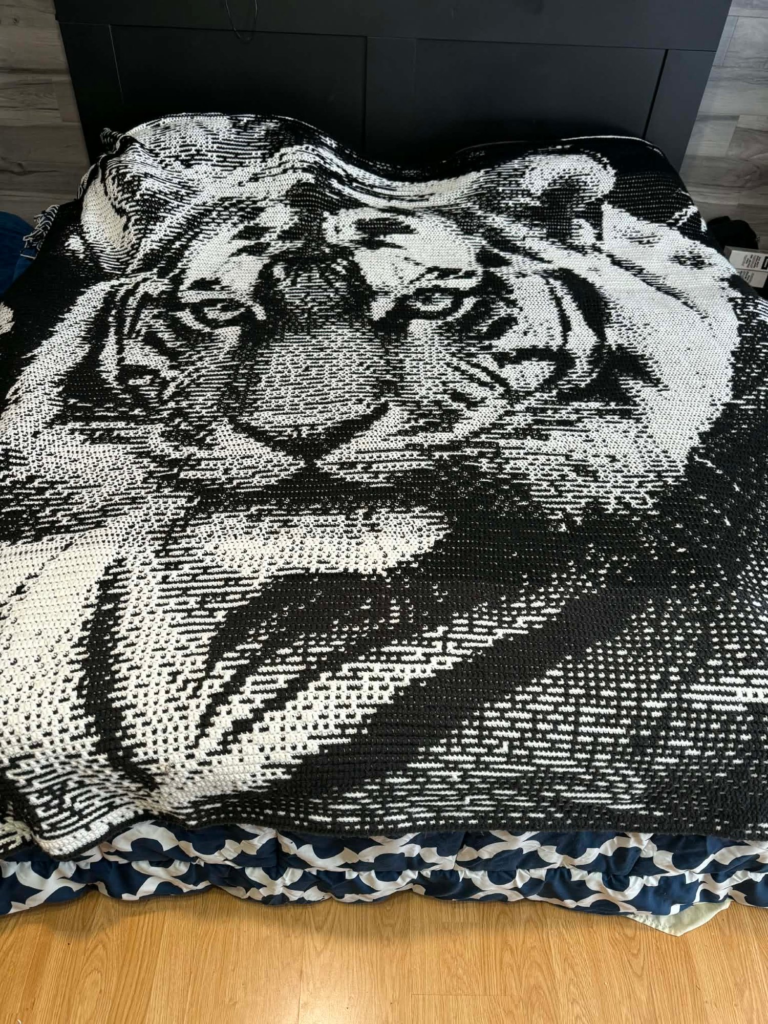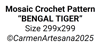 Overlay Mosaic Crochet Bedspread pattern, BENGAL TIGER, written pattern row by row, Big Chart Xs, PDF