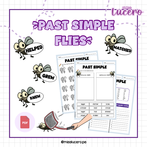 En esta actividad, la maestra menciona un verbo en presente (puede ser regular o irregular) y los estudiantes deberán presionar o golpear la mosca correcta que tenga el verbo en pasado. ¡Gana quien lo haga más rápido y correctamente!