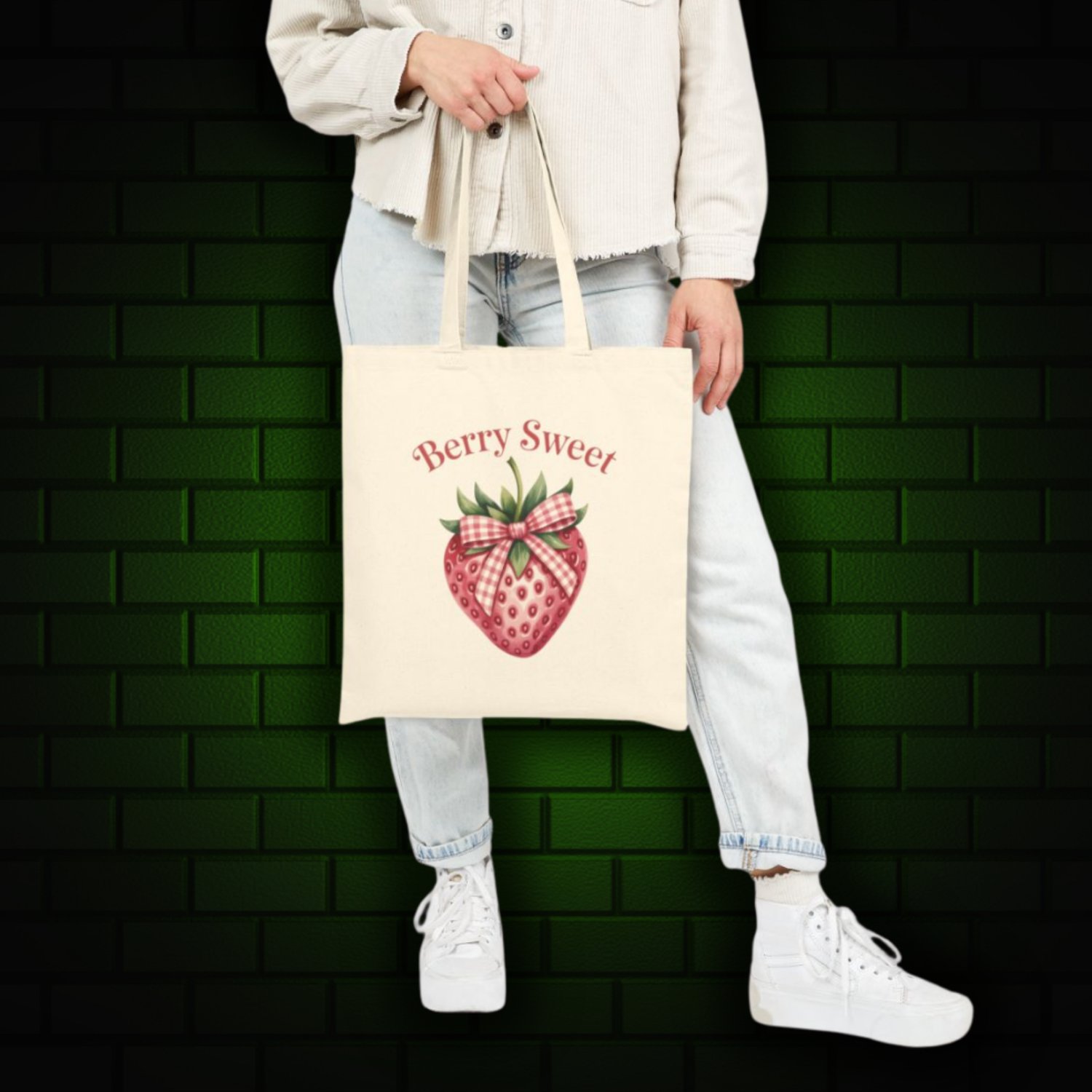 Add a pop of charm to your everyday with this “Berry Sweet” strawberry tote bag—made for errands, farmers markets, or just carrying your essentials in style. Featuring a cute strawberry print and a clean, lightweight feel, it’s both functional and fun.