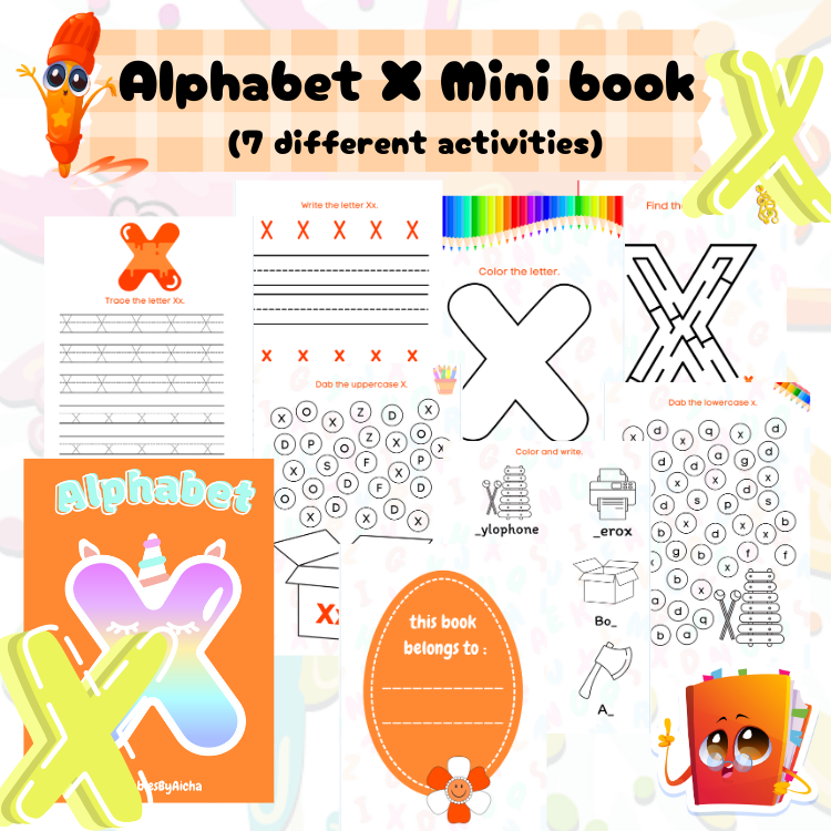 Letter X activities, alphabet worksheets, phonics printables, preschool tracing worksheets, alphabet coloring book, homeschool kindergarten curriculum, letter recognition practice, kindergarten alphabet workbook, printable alphabet mini book