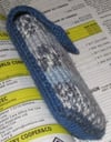 Pattern instructions are general to allow for personalization to the size of any cell phone, iPod, or similar device. The pattern is perfect for leftover bits of any fingering-weight sock yarn including self-patterning or self-striping yarns.
