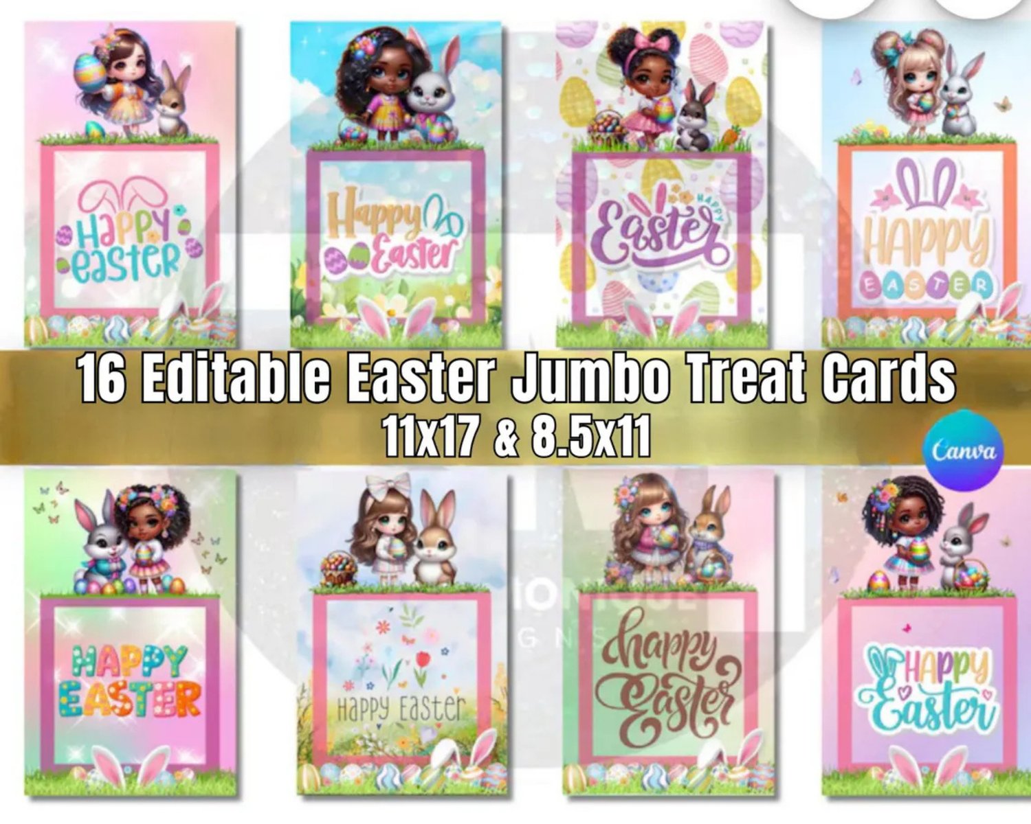 Make this Easter unforgettable with our 16 Editable Easter Jumbo Treat Card Templates! Perfect for kids, parties, and family fun. These templates are designed in Canva and can be resized with Canva Pro to fit your needs.