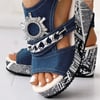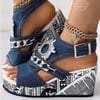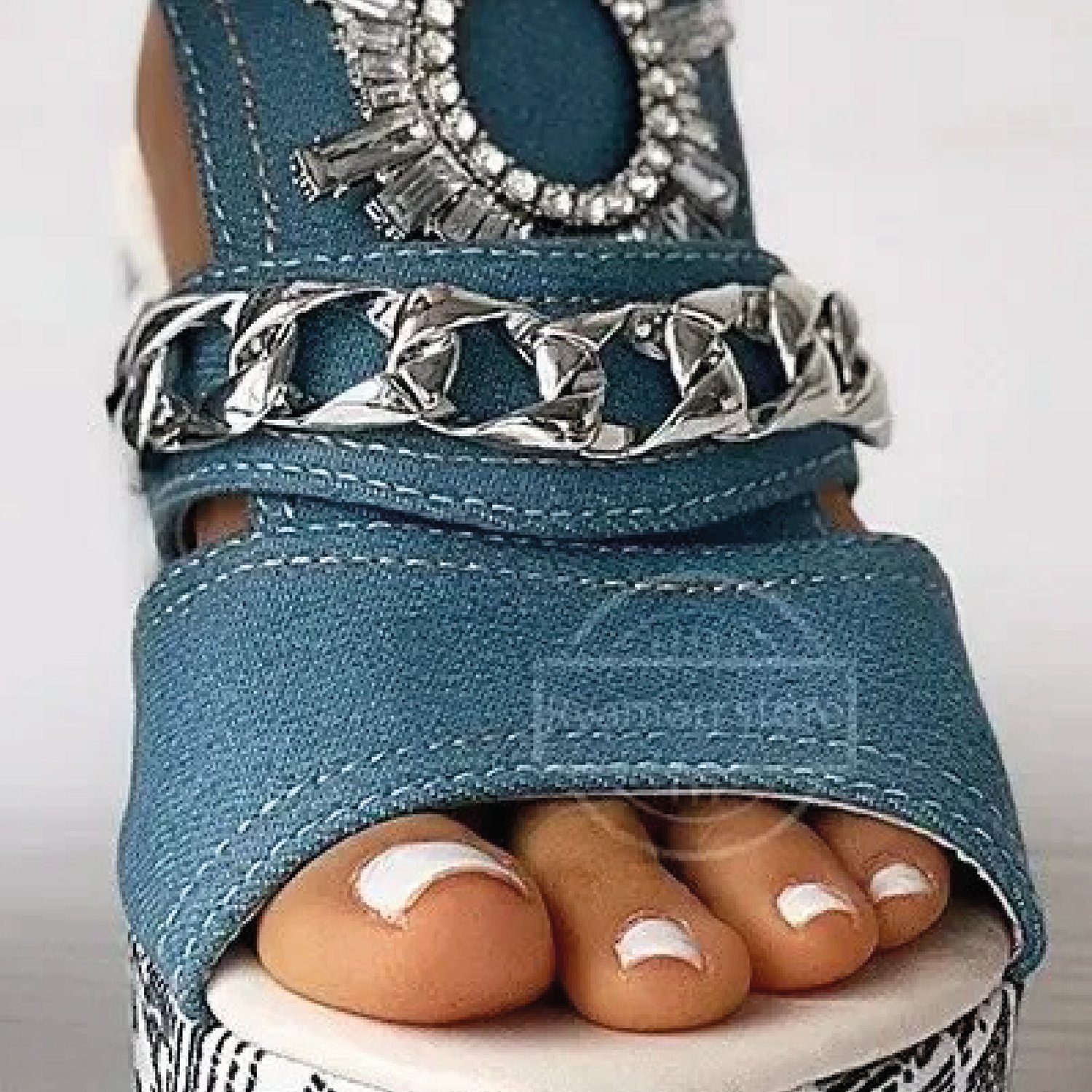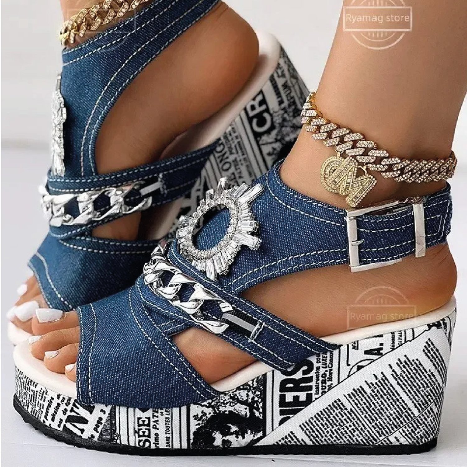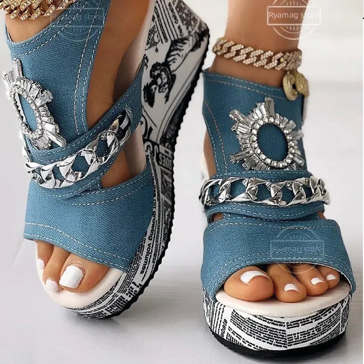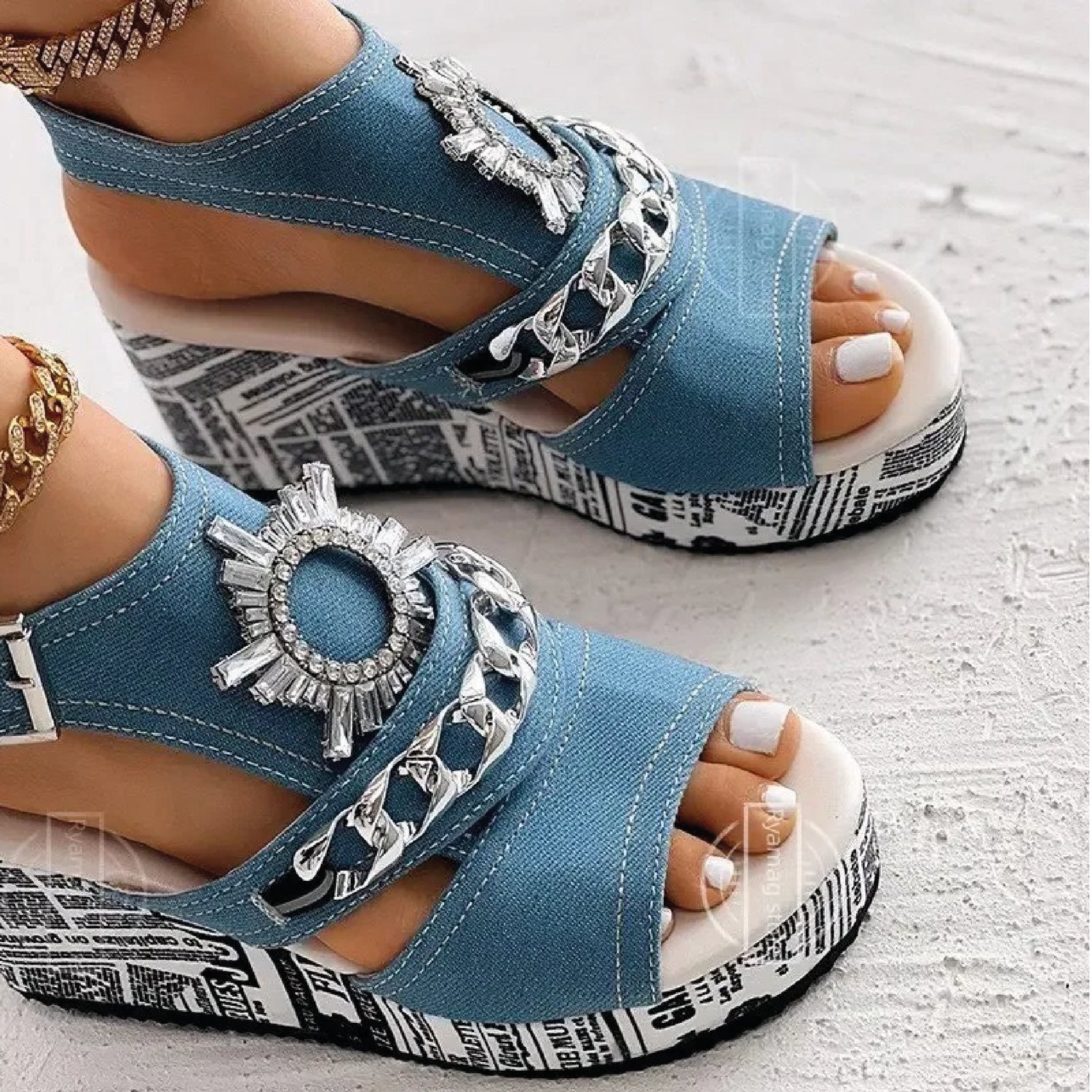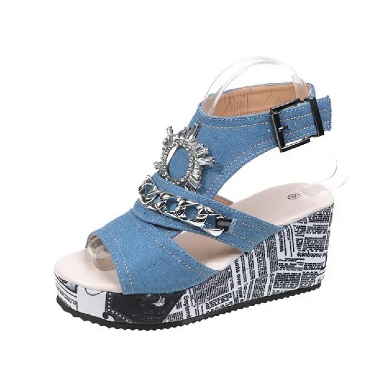 Sandales compensées femme denim strass mode plateforme slingback style journal