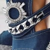 - Design exclusif mêlant denim, strass et imprimé tendance