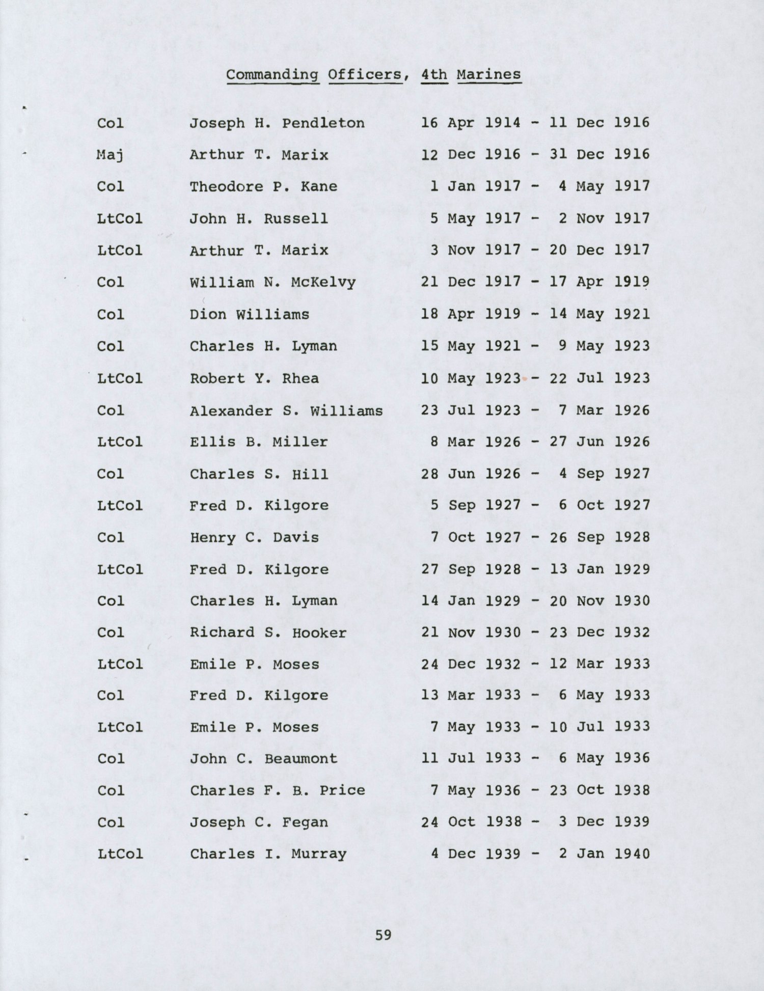 - Commanding Officers, 4th Marines