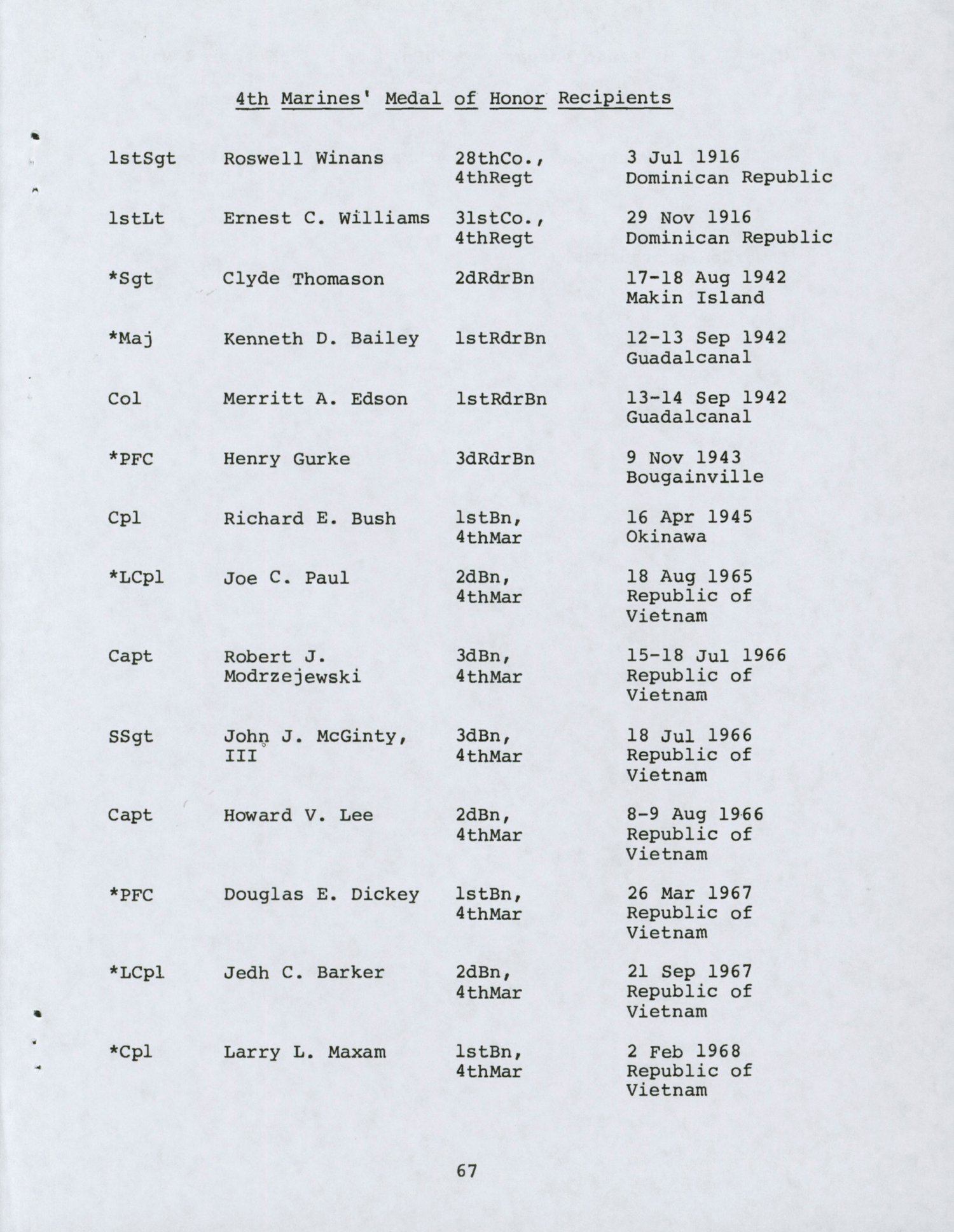- 4th Marines' Medal of Honor Recipients