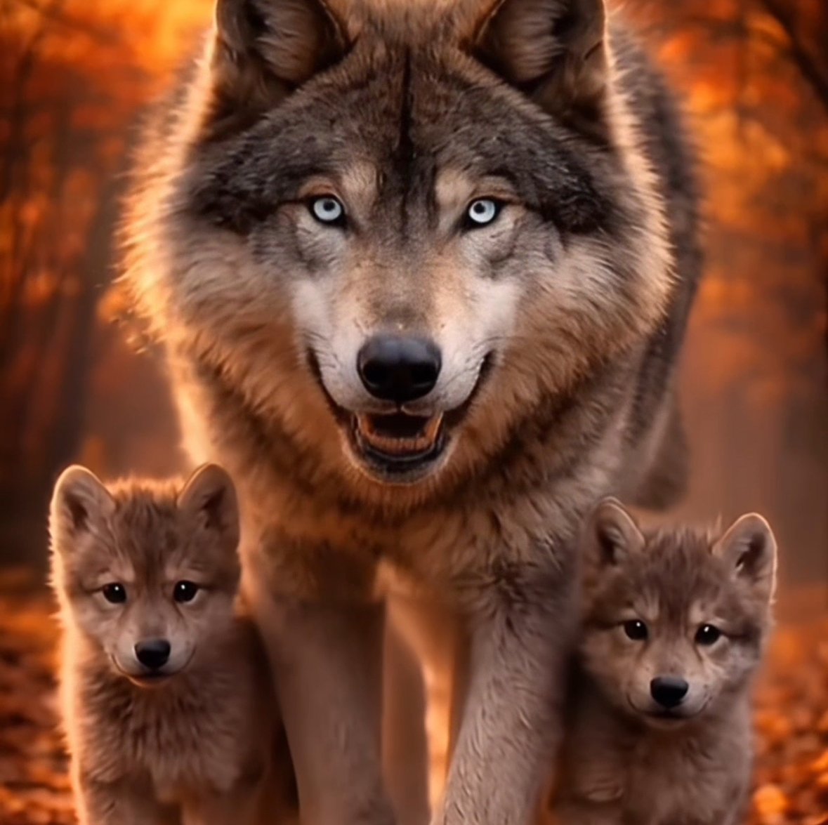 Une louve avance dans la forêt, non pas pour guider… mais pour partager.