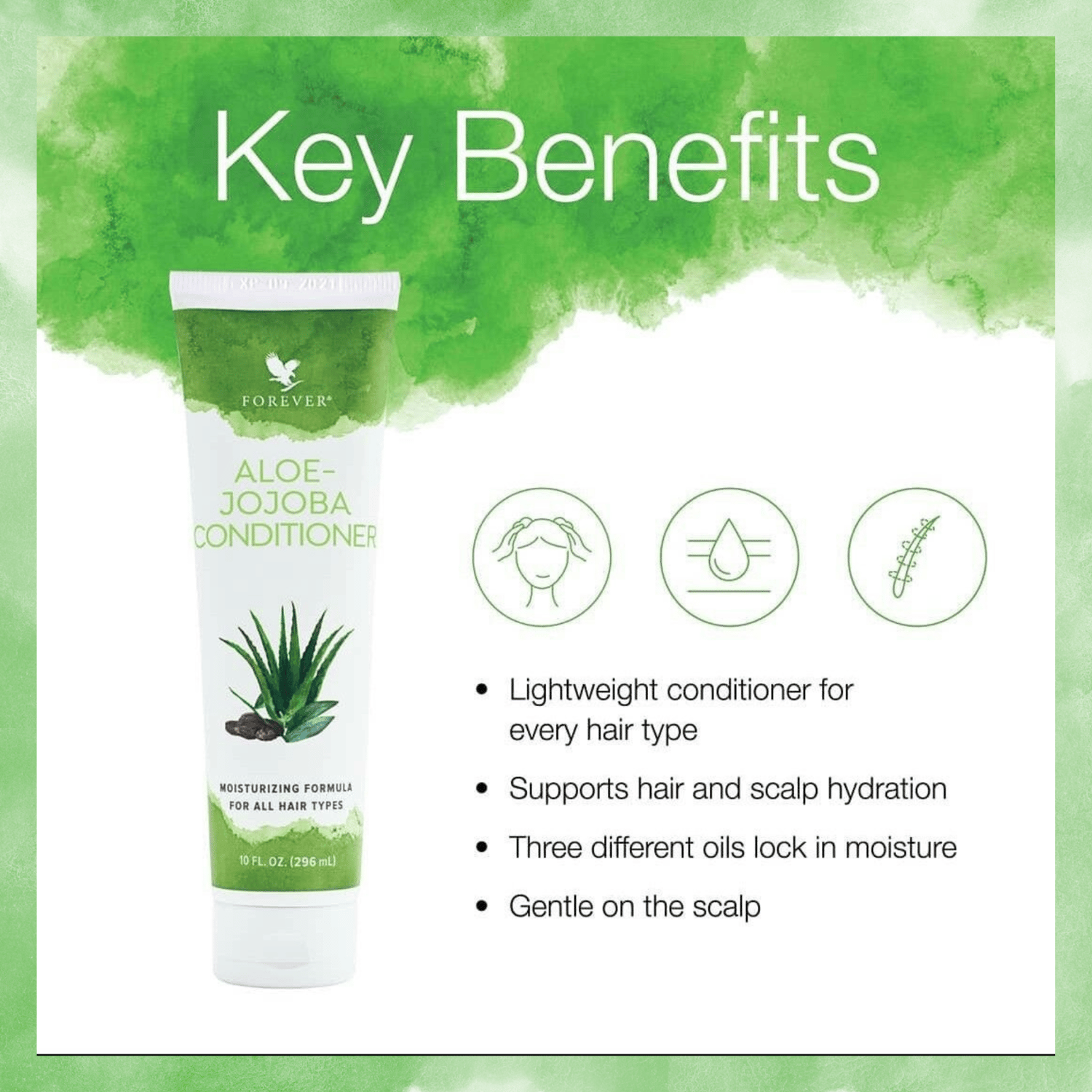 Forever Aloe Jojoba Conditioner pairs perfectly with Aloe Jojoba Shampoo to improve combability of hair while smoothing the strands for easy styling. This soothing conditioner features the same invigorating fragrance as our Aloe Jojoba Shampoo: tropical fruit, sugared sweet cream and melon. Our formula is gender and age neutral, making it perfect for the entire family. Give your hair the very best of what nature has to offer with Forever Aloe-Jojoba Conditioner.