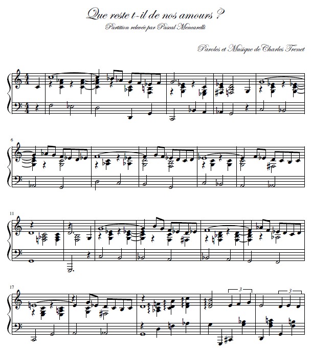 Charles Trenet - Que Reste t-il de nos Amours - Partition Piano Solo