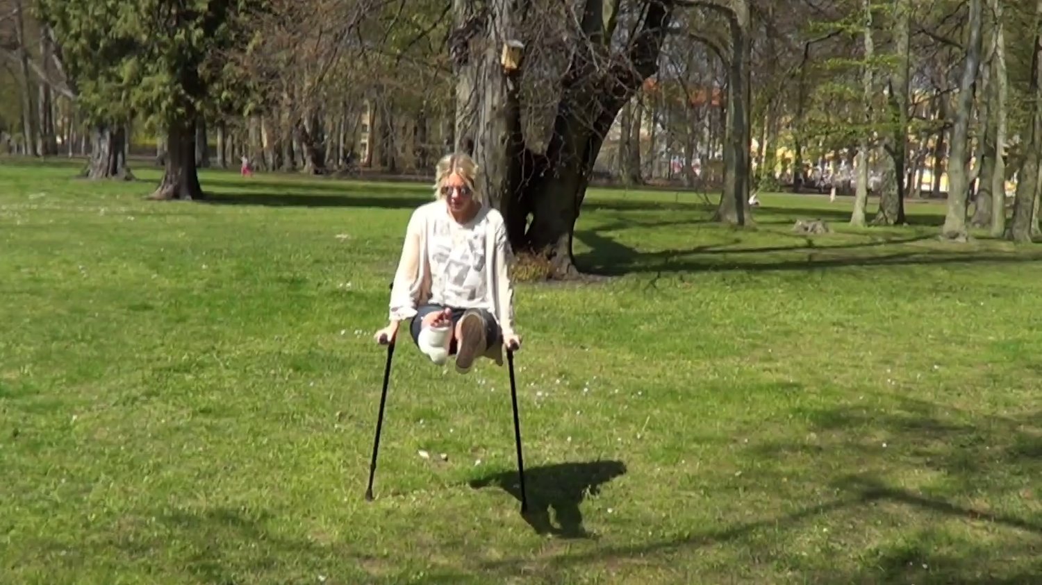 she gets up and start to crutch again but since she know that we love to see her toes and SLC she sits down again an let us take a great closeup.