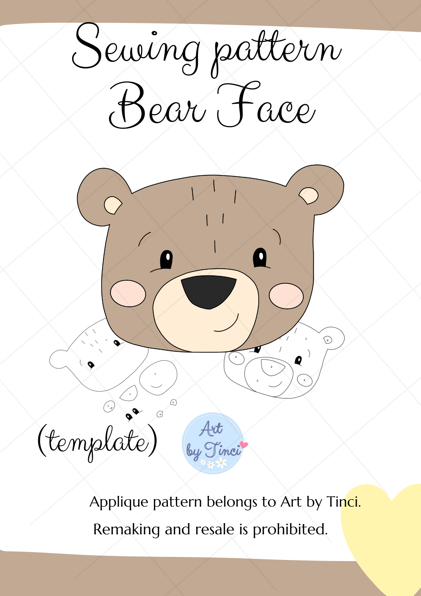 Sewing Applique Pattern Bear Face, Applique, Sewing Project, Template
