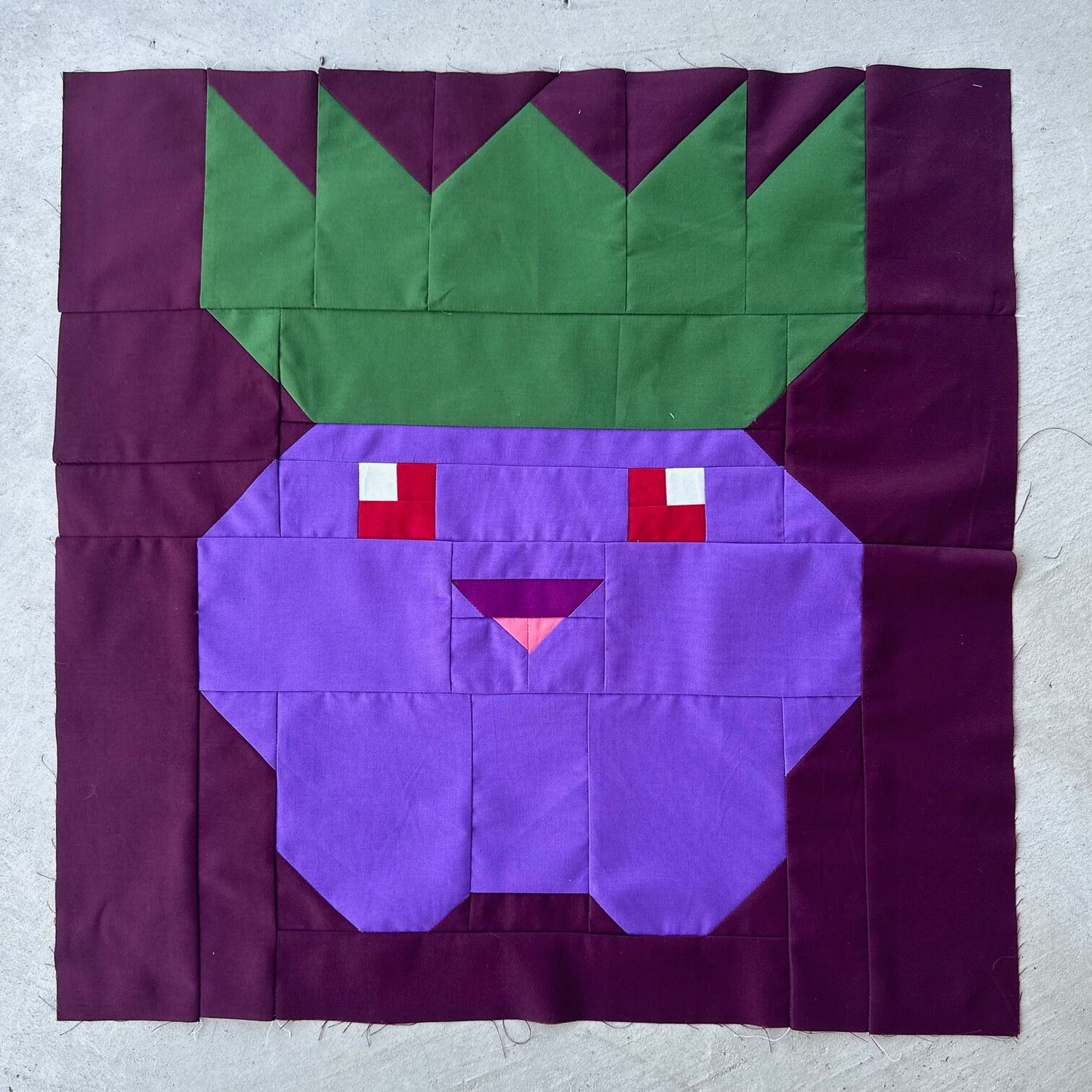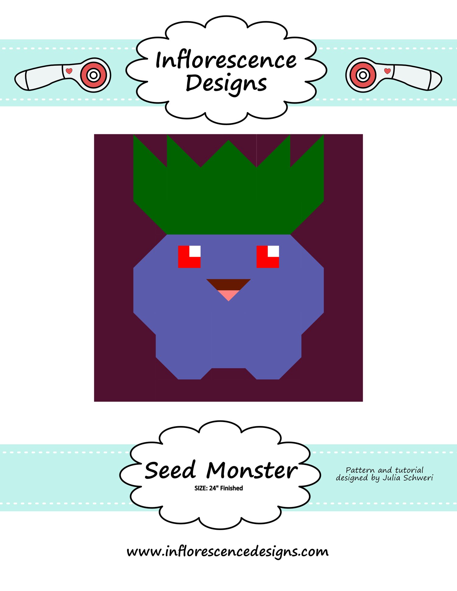 This is a listing for a digital PDF file of the Seed Monster quilt block pattern. It is made using traditional machine piecing.