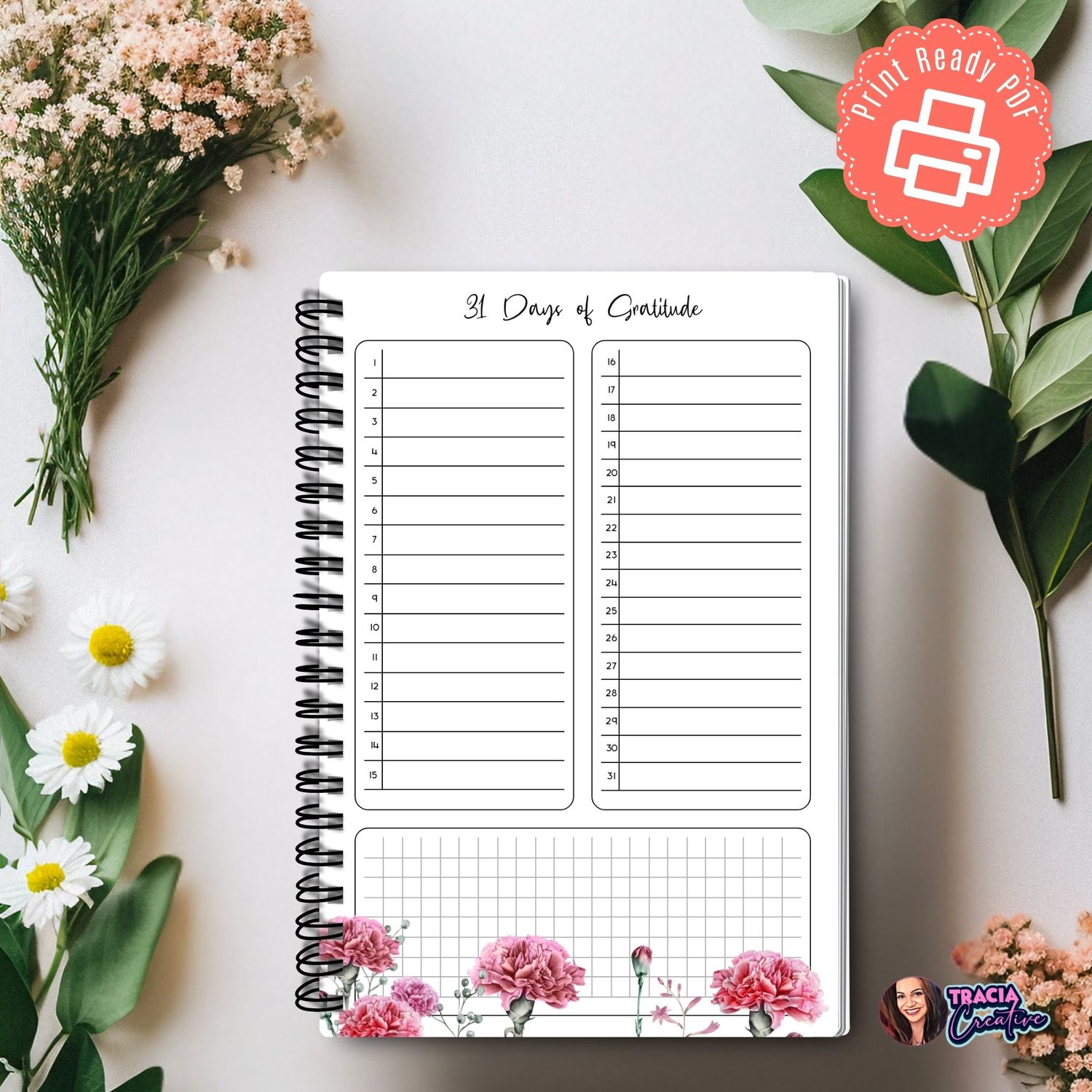 31 Days of Gratitude - Pink Floral - Printable Digital Download PDF