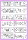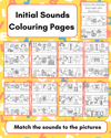 An example is the Sound g - accompanied by the pictures guitar, gate, grass, flower, books, dog. Students identify the sound and colour the pictures that begin with g.