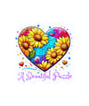 This stunning sunflower heart filled with vibrant puzzle pieces represents the beauty and uniqueness of neurodiversity. The colorful elements and heartfelt message, “A Beautiful Puzzle,” make this design a meaningful way to show support for the autism community. Ideal for sublimation projects, apparel, and gifts.